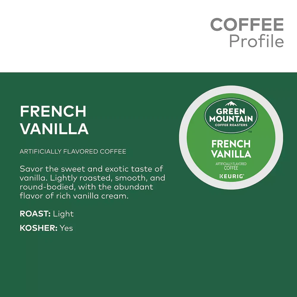 Any coffee lover is sure to adore the sweet, rich and decadent flavors of this Keurig K-Cup Pod Flavored Coffee Collection. PRODUCT FEATURES French vanilla, caramel vanilla cream, hazelnut and butter toffee flavors WHAT'S INCLUDED 12 Green Mountain Coffee Caramel Vanilla pods 9 Gloria Jeans Coffee Hazelnut pods 9 Gloria Jeans Coffee Butter Toffee pods 12 Green Mountain Coffee French Vanilla pods PRODUCT DETAILS 42-pack Model no. 5000330825