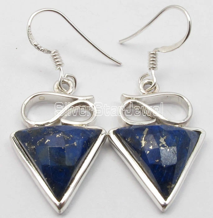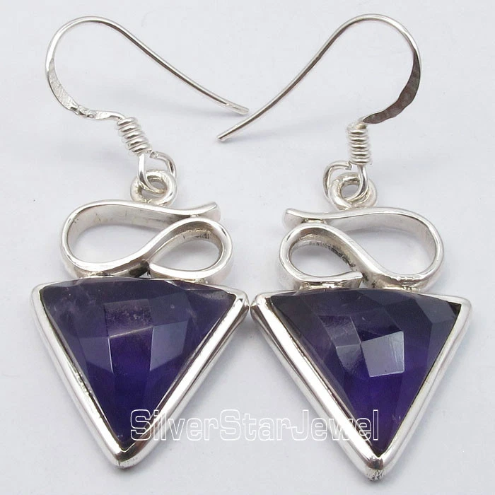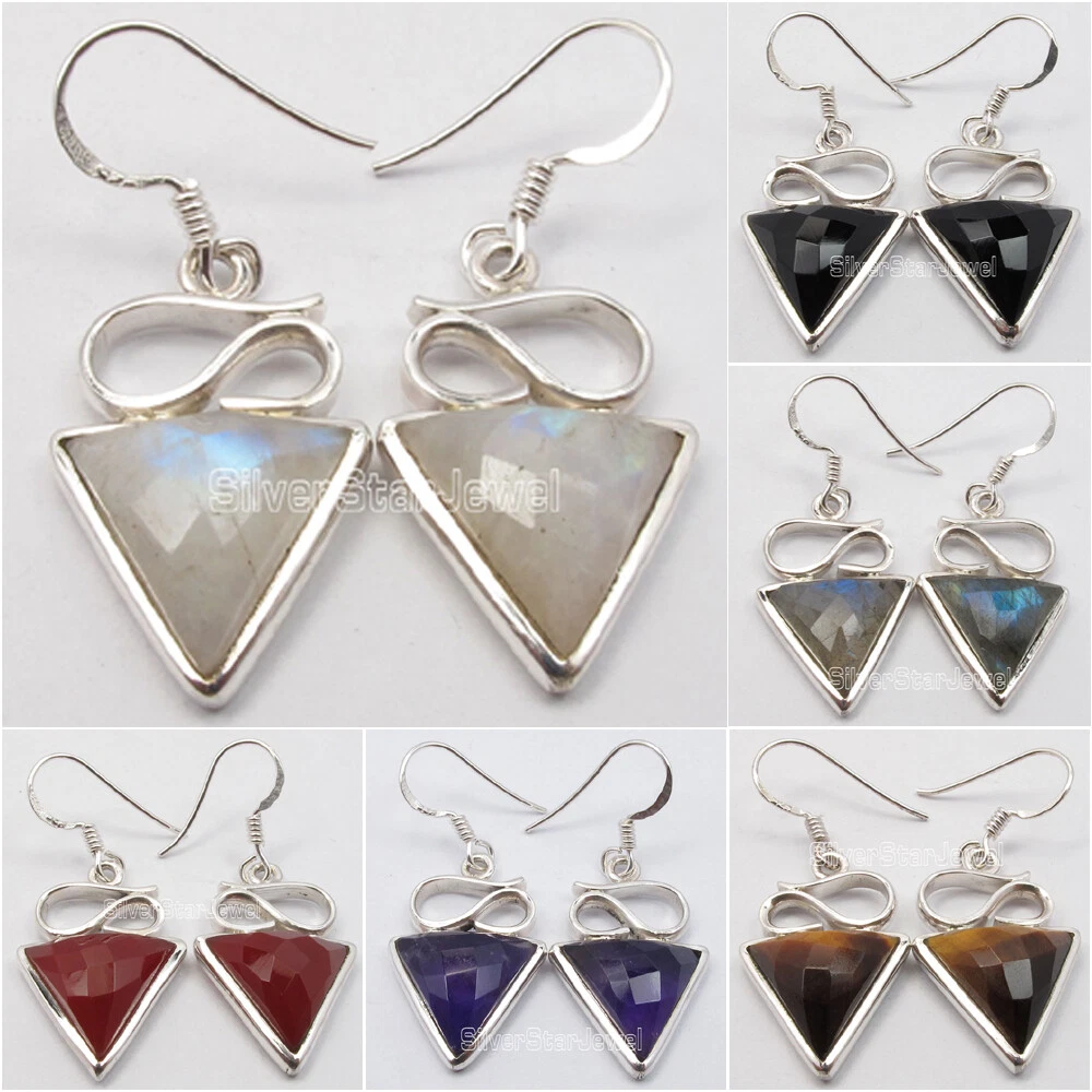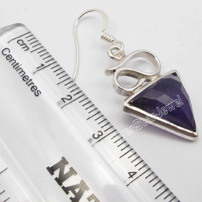 Gemstone Size: 12x12 mm Triangle Facetted Metal Stamp: 925 Theme: Beauty Earrings Length: 40 mm Including Hook (1 5/8 inches) Type: Earrings Seller Notes: “Brand New Jewelry Article from SilverStarJewel” Earrings Weight: 6.3 Grams (Approx.) Metal: Sterling Silver Earrings Width: 16 mm (5/8 inches) Metal Purity: .925 Sterling Silver Main Stone Creation: Natural Fastening: Hook Occasion: Commitment Style: Drop/Dangle Brand: Handmade Country of Manufacture: India