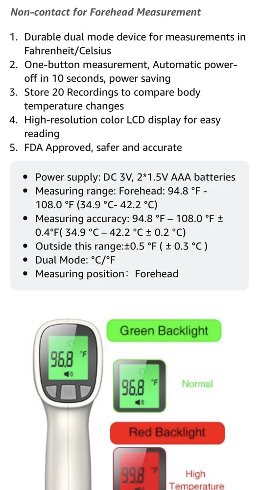 Large LCD Digital Infrared Thermometer Non-contact Forehead Baby Temperature Gun