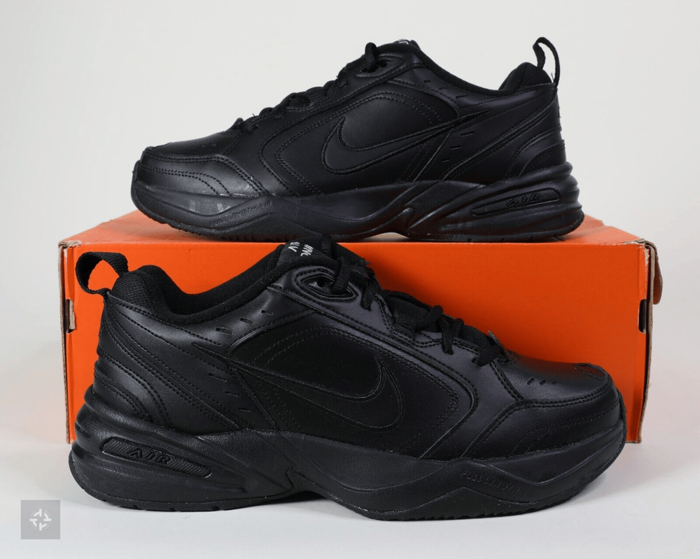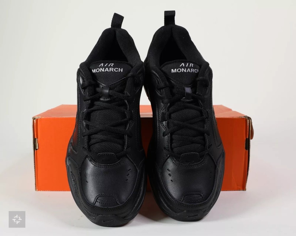 The Nike Men's Air Monarch IV Training Shoes feature Phylon midsoles with full-length encapsulated Air-Sole units for light weight, comfort and cushioning and nonmarking solid rubber outsoles that provide durability and traction and wrap up the toes to offer protection. Mesh tongues provide breathability, and soft fabric linings help minimize irritation.