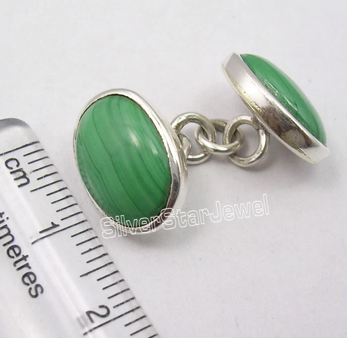 Theme: Beauty Item Type: Cufflinks Occasion: Valentine's Day Main Stone: Malachite Main Stone Shape: Oval Main Stone Creation: Natural Main Stone Size: 8 x 12 mm Country/Region of Manufacture: India Metal Stamp: 925 Length (inches): 1.4 cm ( 0.6 Inch ) Weight: 7.7 Grams Metal Purity: 925 parts per 1000 Metal: Sterling Silver Seller Notes: “Brand New Jewelry Article from SilverStarJewel” Brand: Handmade Type: Cufflinks Style: Link Main Stone Color: Green Total Carat Weight (TCW): 6.0