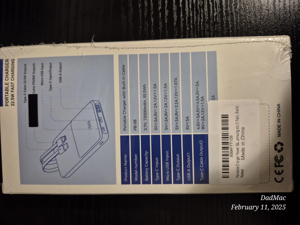 The PB-08 PD22.5w Portable Charger Power Bank is a universal power bank with a capacity of 15000mAh. It is compatible with various brands including ZTE, Panasonic, Apple, LG, Samsung, Nokia, HTC, Verizon, Google, Motorola, and Plantronics. The power bank comes in black and is made of plastic. It has two ports, including Dual USB, USB-C, and Micro-USB. It also features fast charging and has a hybrid, slim, and rugged design. The power bank can be mounted on a wall, desktop, or desk using a clamp. It comes with a hard case, charging and data sync cable, and a charging cable. The manufacturer warranty is for 2 years.