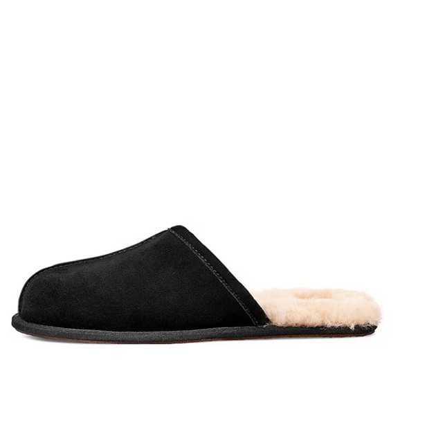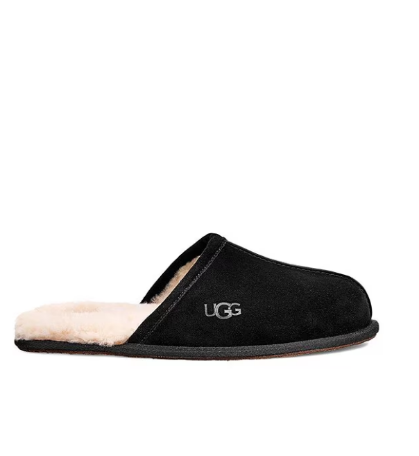 Flash Sale! UGG Men's Scuff Suede Slippers - Black, Medium | New DESCRIPTION From UGG®, the Men's Scuff Suede Slippers feature: Premium suede upper Suede with embossed UGG® tread design for indoor use Vamp lined with 17 mm UGGpure™ wool Slip on construction 17 mm sheepskin insole Artificially dyed and treated real sheepskin from sheep or lamb (Australia, European Union or United States) Imported.