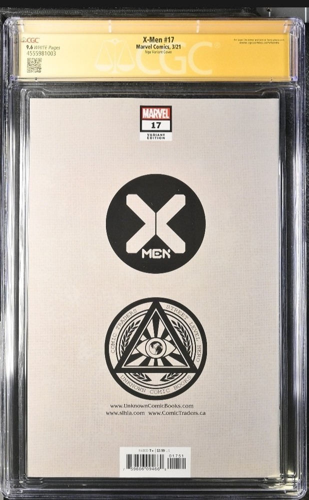 Winner take all Flash Sale! For thisThe highly collectible X-Men homage variant cover book, specifically issue #17 in the X-Men 2021 series. This particular variant is a Virgin Variant signed by artist Kael Ngu, featuring characters like Gambit locking lips with Mystique, and features other members of the X-Men superhero team. Graded at a 9.6 Near Mint+ by Certified Guaranty Company (CGC), this modern-age comic from Marvel Comics is a sought-after item for fans and collectors alike. With its unique cover art and direct features, this comic is a must-have for any superhero enthusiast.