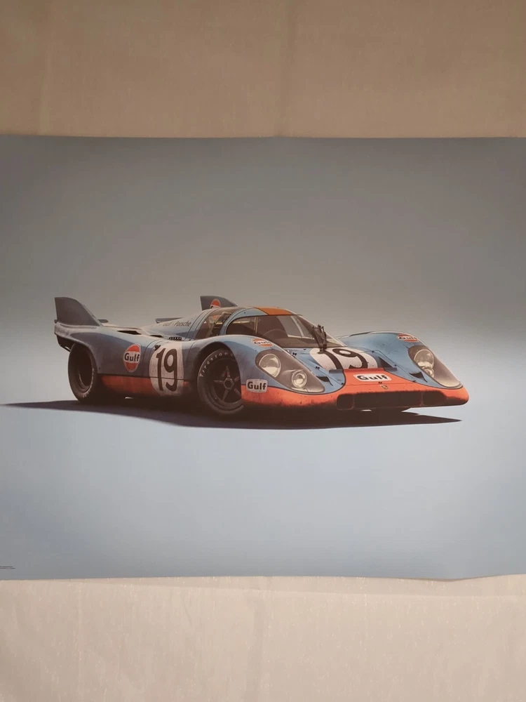 OBO Porsche 917 Gulf 24 Hours LeMans 1971. Printed on highest quality linen paper 27 1/4x19 and 3/4 Unbelievable print special purchase. Only three available Track Page Views With Auctiva's Counter If your an INTERNATIONAL BUYER PLEASE Contact Me First So I can make a Special LISTING for Multiple ITEMS So we Can Sell the ITEMS so it SAVES YOU ON SHIPPING