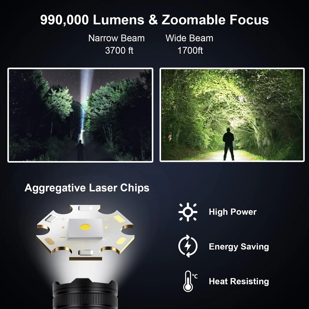 Flashlights High Lumens Rechargeable 3 PCS, 990,000 Lumens Led Flashlight Bat...