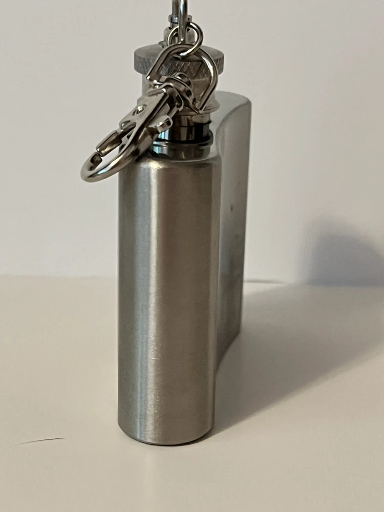 Set Includes: Flask Item Height: 3 inches Seller Notes: “Nice condition” Features: Leak Proof, Lightweight, Washable Type: key chain Brand: Unbranded Material: Stainless Steel Color: Silver Shape: Square