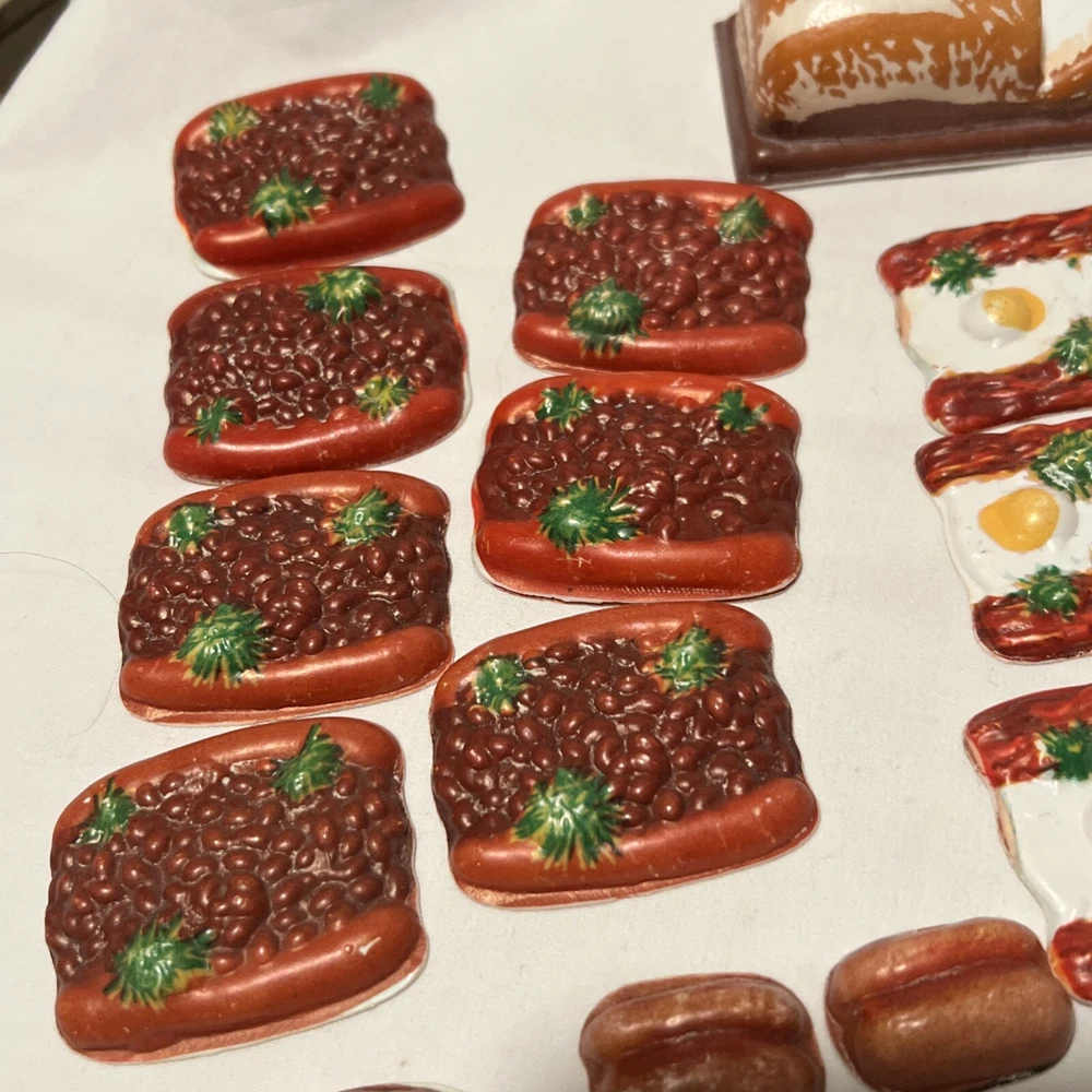Flat Plastic Food Toy Pretend 33 Pieces Child Play Kitchen There are 33 pieces of fake pretend molded flat food as seen in photos. Pieces include Turkey, sliced bread and rolls, vegetables and dessert. There are several duplicates as shown. Like pieces will be stacked nested together. There are some scratches and color loss. Please see photos for more details and email us if you have any questions. From a smoke-free with pets home. Payment Terms: Payment is due within 2 days of close of sale/auction. If for some reason you cannot pay within this time period, please contact us immediately. Check out our other items and email us if you have any questions. Please email us if you have any questions. We look forward to doing business with you again! Be sure to "SAVE THIS SELLER" on our Items For Sale page. dbcl-2-1