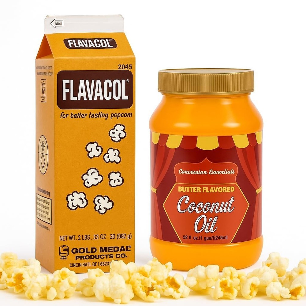 Perfectware- Flavacol Popcorn Seasoning Salt 35oz & Concession Essentials Coconut Oil 32oz Combo Kit – Buttery Movie Theater Style Popcorn Flavoring Set for Home or Concession Use About this item 🍿 Movie Theater Quality Popcorn at Home – Bring the authentic cinema popcorn experience to your kitchen! This bundle includes Perfectware Flavacol 35oz Popcorn Salt and Concession Essentials 32oz Coconut Oil—the same ingredients used by professional theaters and concession stands for rich, buttery popcorn every time. 🧂 Flavacol Popcorn Salt for Bold, Buttery Flavor – Specially formulated fine salt with natural butter flavoring coats each kernel evenly, giving your popcorn that signature golden color and savory taste you love from the movies. 🥥 Premium Coconut Oil for Perfect Popping – 100% pure, buttery-flavored coconut oil designed to withstand high popping temperatures without burning. Creates crisp, flavorful popcorn with the ideal crunch and aroma. 🎬 Perfect for Home Theaters, Concessions & Events – Ideal for home movie nights, concession stands, carnivals, parties, and fundraisers. Consistent quality and professional-grade ingredients make every batch taste fresh and delicious. ✅ Easy to Use & Cost Effective – Simply heat the coconut oil in your popper, add kernels, and finish with a sprinkle of Flavacol for an unbeatable popcorn flavor. One kit makes dozens of large popcorn servings—excellent value for families, schools, and businesses.