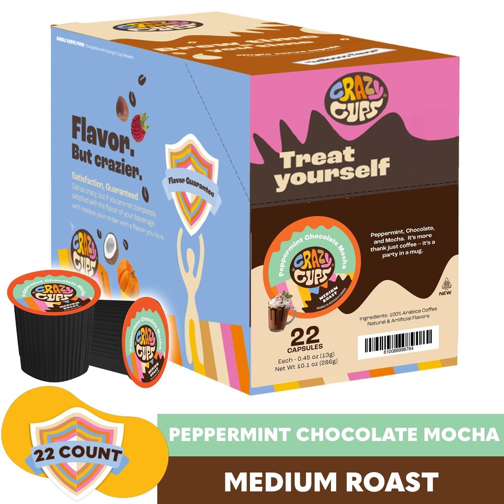 Flavored Coffee for Keurig K-Cup Machines, Peppermint Chocolate Mocha, Hot or Iced Drinks, 22 Single Serve, Recyclable Pods EXPERIENCE MORE FLAVOR WITH : Peppermint, Chocolate, and Mocha. It’s more than coffee – it’s a party in a mug. MORE COFFEE - Our coffee pods have 30% more coffee in every capsule than the average flavored kcup. Savor the rich decadent flavor of our Peppermint Chocolate Mocha Coffee in each sip. Add variety and enjoy hot or as a refreshing ice-cold beverage. TOP QUALITY INGREDIENTS: Each of our flavored coffee pods are gluten-free and lactose-free. In addition, each cup is vegan, kosher, and pareve, and has no added sugar. You can feel good, satisfying that sweet tooth with our Peppermint flavored coffee. ECO-FRIENDLY: Crazy Cup Peppermint single-serve for Keurig Machines are packaged in recyclable capsules. Rest assured, you’ll enjoy your perfect cocoa coffee brew while simultaneously doing right by mother nature. COMPATIBILITY AND VERSATILE: All Artisan Roasted Single-Serve Coffees are compatible with the 1.0 and 2.0 Keurig K-Cup Brewer Machines. Quickly brew any of our flavored coffees like Chocolate Raspberry Truffle, Decaf Pumpkin Spice, or Death by Chocolate.. Promising unrivaled taste and flavor, our coffee pods brew with the Keurig K Cups Brewers. Keurig and K Cups are registered trademarks of Green Mountain and Keurig. has no affiliation with Keurig. Shipping We offer FREE shipping on all orders! We ship within Three business days of payment, usually sooner. We use a selection of shipping services such as UPS, FedEx, USPS etc. We only ship to the lower 48 states, no APO/FPO addresses or PO Boxes allowed. Local pickups and combined shipping options are not provided at this time. Return You can return a product for up to 30 days from the date you purchased it. Any product you return must be in the same condition you received it and in the original packaging. Please keep the receipt. Payment We accept payment by any of the following methods: PayPal Please pay as soon as possible after winning an auction, as that will allow us to post your item to you sooner! Feedback Customer satisfaction is very important to us. If you have any problem with your order, please contact us and we will do our best to make you satisfied. Contact Us If you have any queries, please contact us via ebay. We usually respond within 24 hours on weekdays. Please visit our eBay store to check out other items for sale! Thank you for shopping at our store.