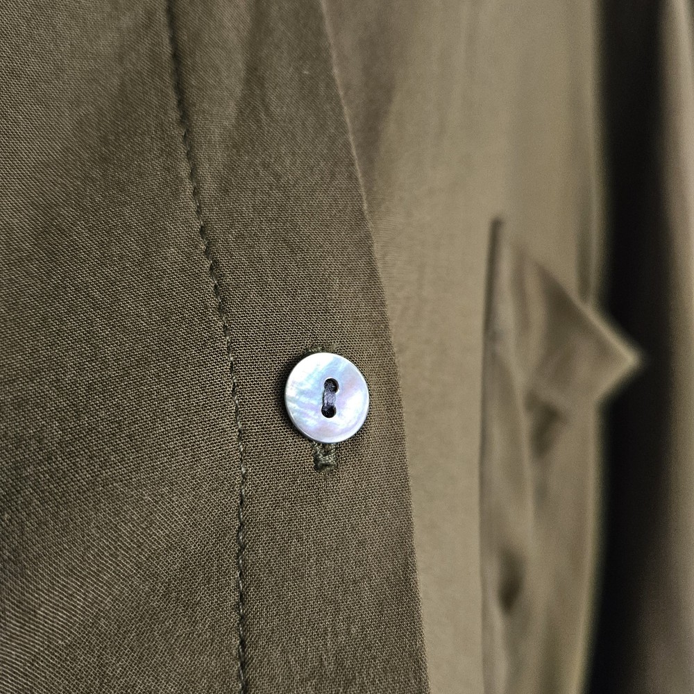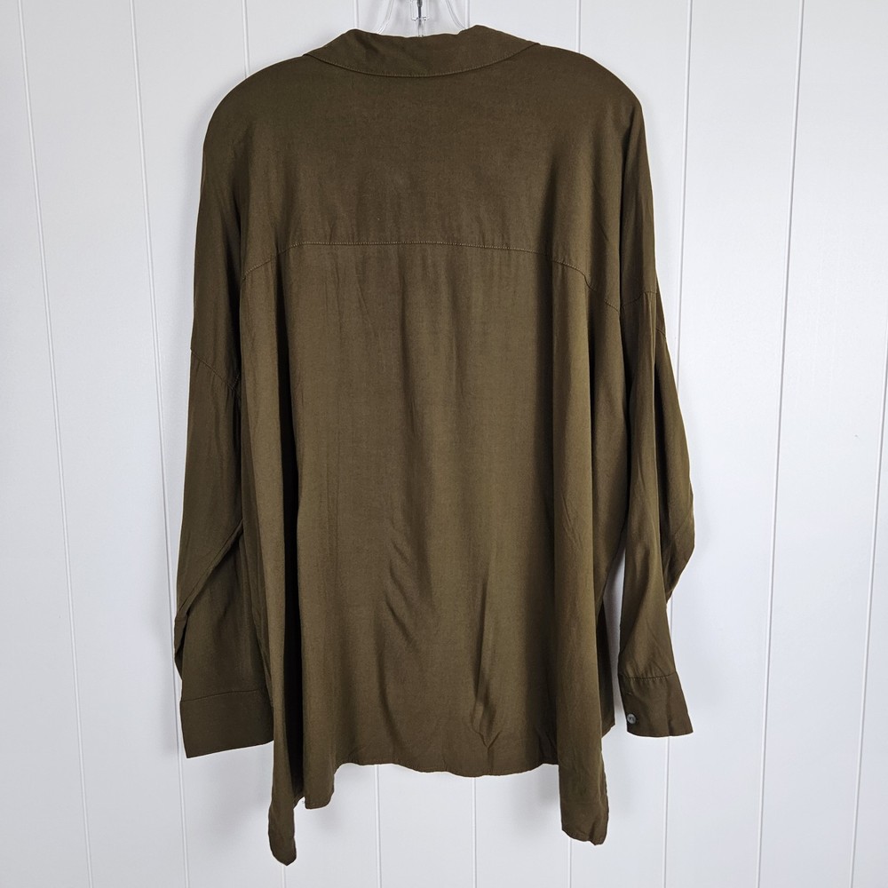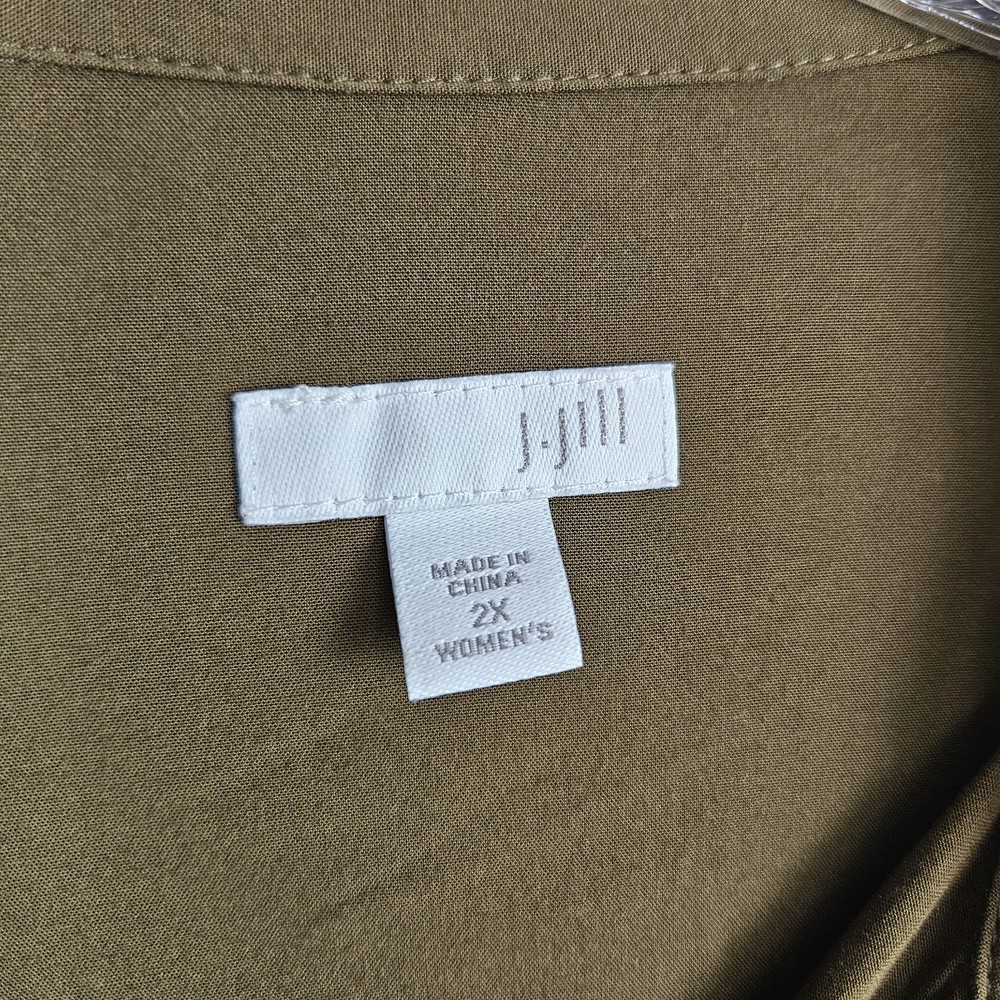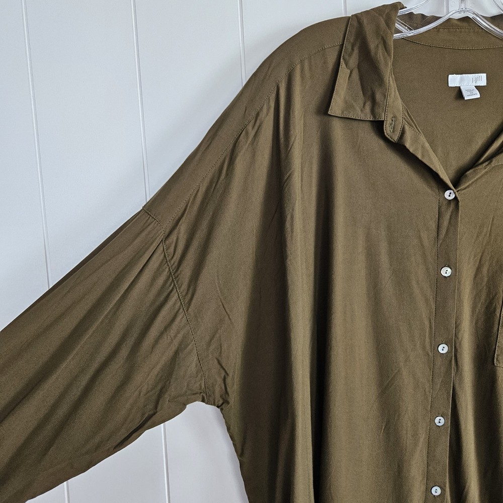 Flaw- there are three small holes on the bottom of this blouse as pictured. The won't be noticeable if front tucked. J Jill Blouse Button Up Long Dolman Sleeve Olive Green Lightweight Womens 2x Loose Boho Classic Capsule Office Lightweight Good pre-owned condition. Please see photos for measurements. H2