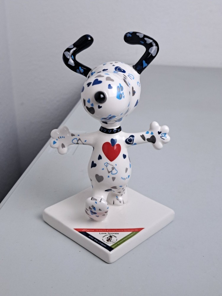 Westland Giftware Peanuts on Parade 'LOVE SNOOPY w/ Hearts' 5.25" Ceramic Figurine #8392 is in Nice Overall Condition with a Small Manufacturing Flaw On Back Side of Snoopy's Head. Artist Amy Lindgren. NO BOX. SUPER CUTE!!