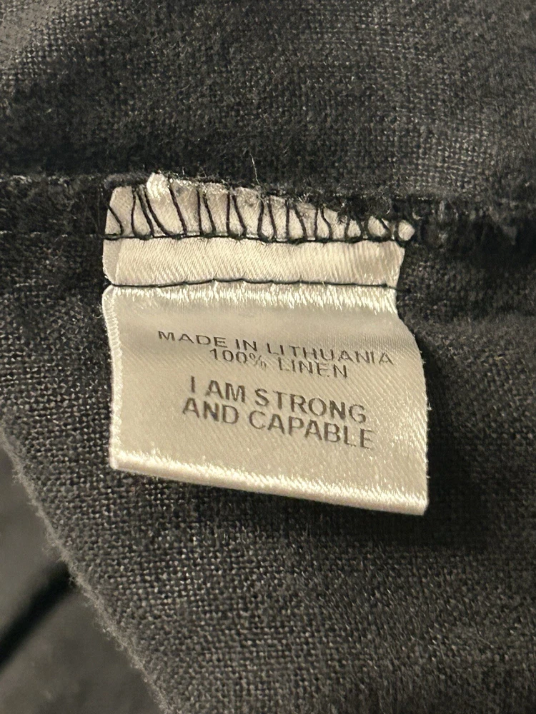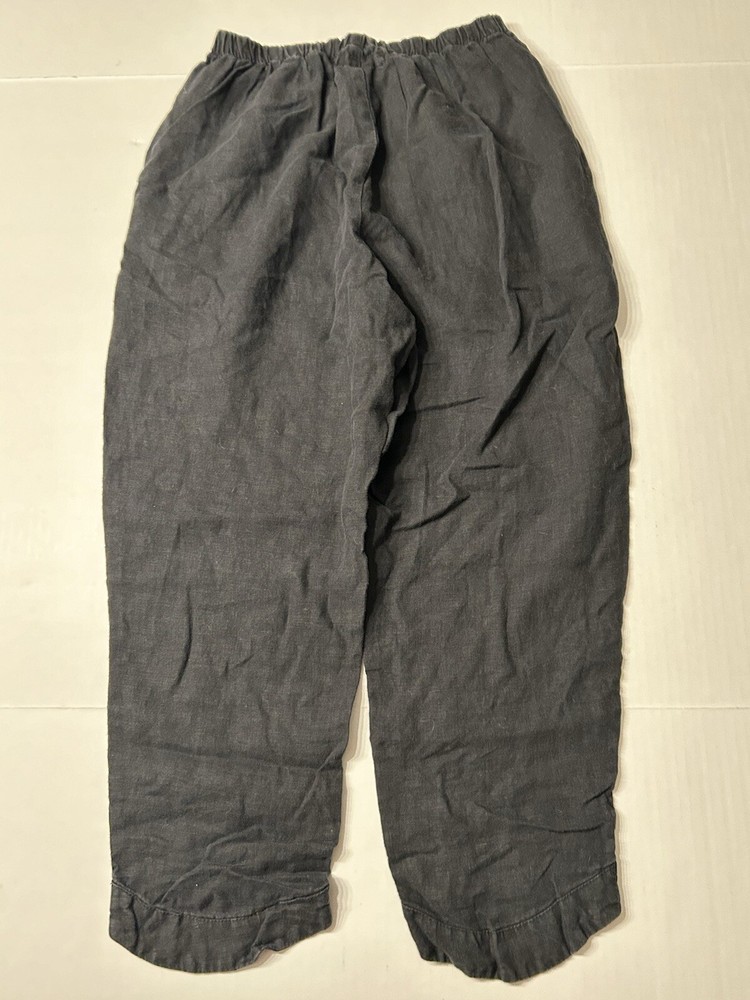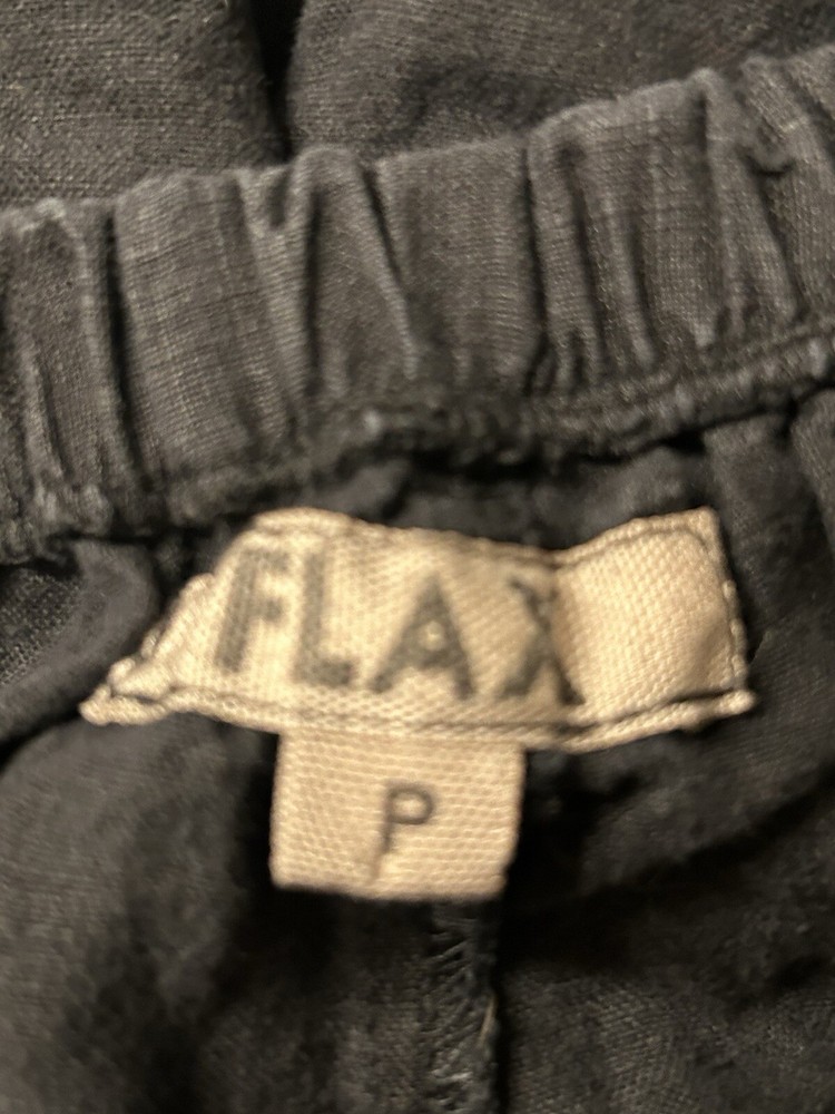 Flax Linen Women’s Petite Black Pull On Straight Leg Cropped Pants 24” Very good pre-owned condition 100% linen Elastic waist Has pockets Waist across:12” Rise:12.5” Inseam:24” Nice!! BG16