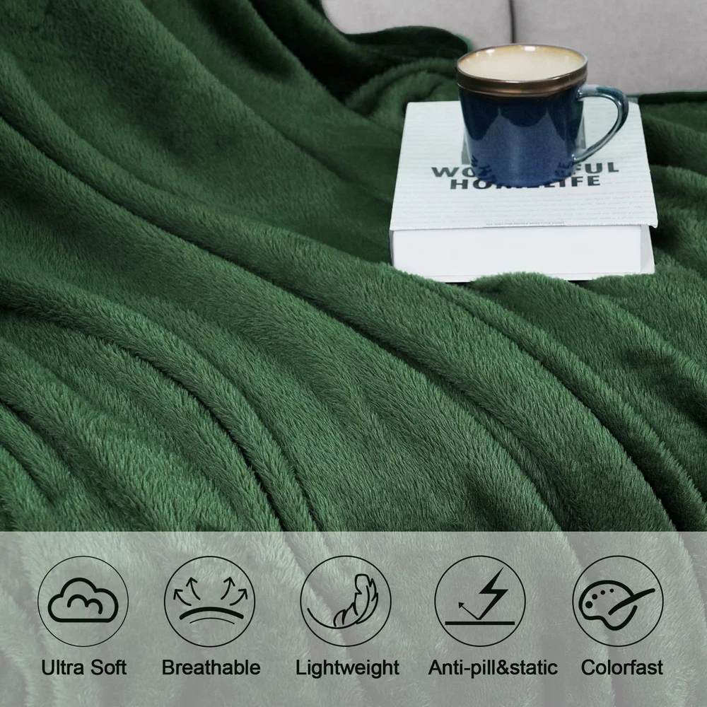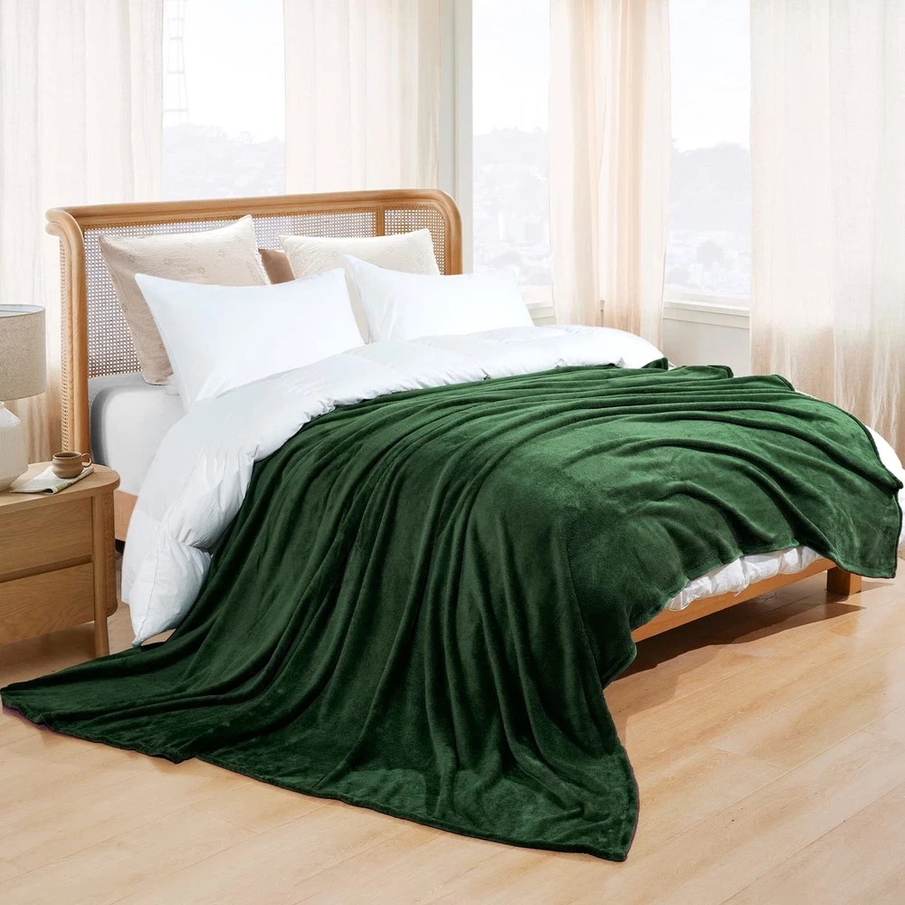 Ultra Soft & Comfy: David’s Home fleece flannel blankets are made of 300GSM 100% premium skin-friendly fleece fabric, which is super soft & comfy, has the wool-like luxurious feeling. Features in better warmth, softness and breathability, this blanket will offers you with the best sleep experience in different environments. More Durable: Why we say it's a more durable blanket? Firstly, it has wider stitched border, the seams are neat and firm, processed the excellent close sewing, ensures the durability of this blanket. Secondly, the fabric is of higer density than normal ones, can absolutely sustain daily sharp objects, such as rings, animals nails and so on. Thirdly, We has refined the fabric and dyeing process, which will greatly prevent the problem of fuzzing, lint, fading or shirinking after multiple washing. Widely Application: Our reversible fleece blanket is available in 4 sizes, not only for a practical fleece blanket, but also can be used as a bedspreads or bed layering. Features in fine texture, super soft, folding resistance, lint-free, no pilling, no shrink, this blanket is perfect for couch, bed, office, car, pet use. No matter you are looking for a blanket for home, picnic, camping, office, travel, even for your pets or be a gift, this blanket won't let you be disappointed. Easy Care: Machine wash cold with like colors. Gentle cycle. Do not bleach. Tumble dry low. Remove promptly from dryer to avoid wrinkles.Cool iron if required. No pilling, no shrink, no fade, labor tests show that the throw blanket keep its shape and stay brands new after multiple wash cycles. Package Include: 1 Pack dark green flannel fleece queen size blanket(90" X 90"), perfect for bed couch sofa,home decoration or pet use.