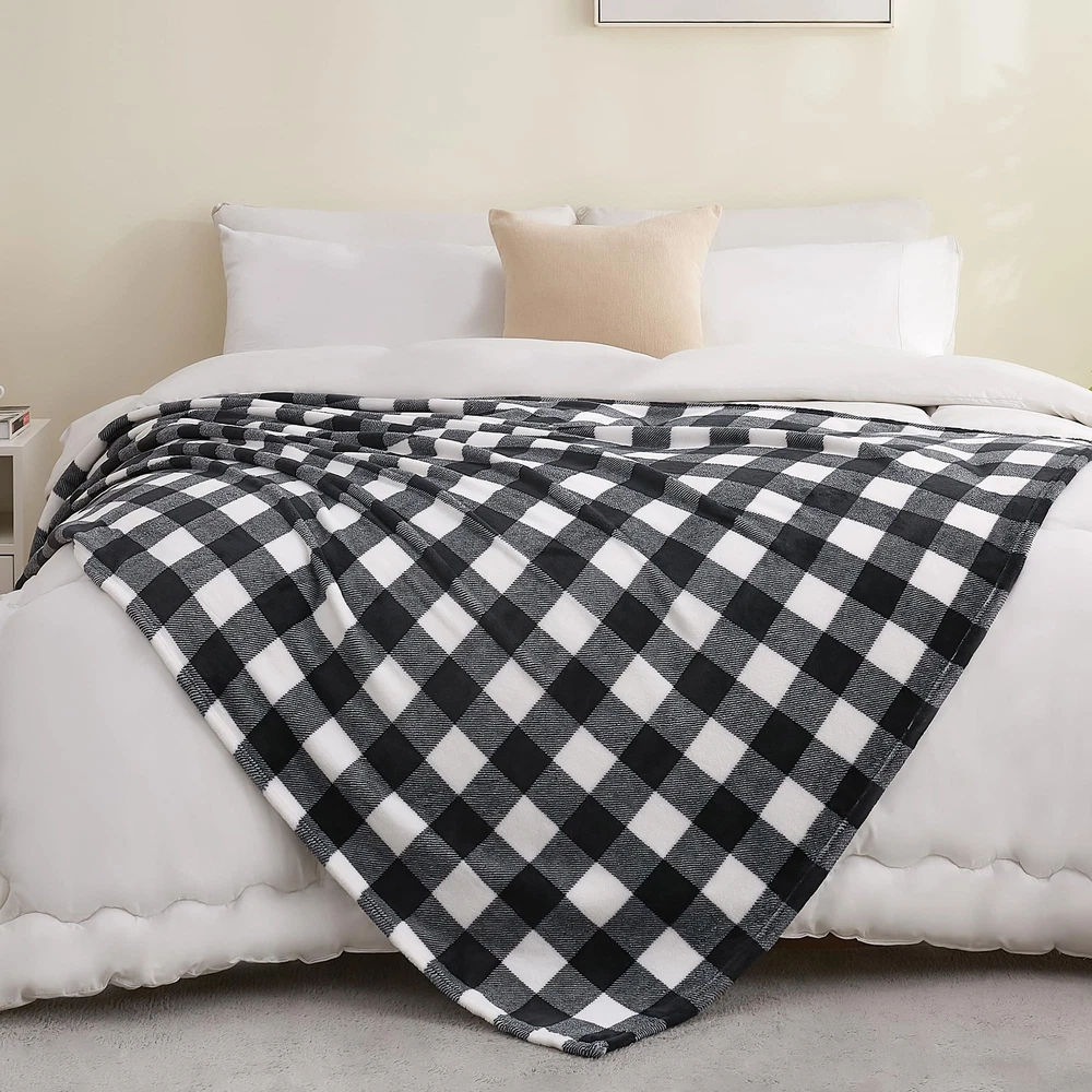 260GSM FLANNEL FLEECE: The flannel fabric we choose is originally made from 100% polyester and brushed to create super softness on both sides, the throw is designed to be buffalo plaid blanket which is elegant. VERSATILE USAGES: Reversible design offers extreme softness. Diversity colors and checkered patterns endow this throw blanket with elegance. Also can be regarded as a decoration to dress up your warm home while protecting your luxury bed and couch from dirt and stain. ALL SEASONS SUITABLE: Fleece Blanket for couch or bed is perfect for decorating the home - The fabulous color revives this fall blanket with an elegant appearance to complement your room with a chic feeling. Timeless and classical checkered patterns add a unique atmosphere to Halloween and Christmas. SUPER SOFT FUZZY BLANKET: The blanket is designed with a plush thickness that keeps you extremely warm wherever you are. The Lightweight blanket with a timeless and luxury buffalo plaid pattern, makes it easy and convenient to carry and store outdoor for camping and travel. EASY CARE: It is machine washable and dryable for easy care. No shrinkage, No color fading, and No unraveling after washing.