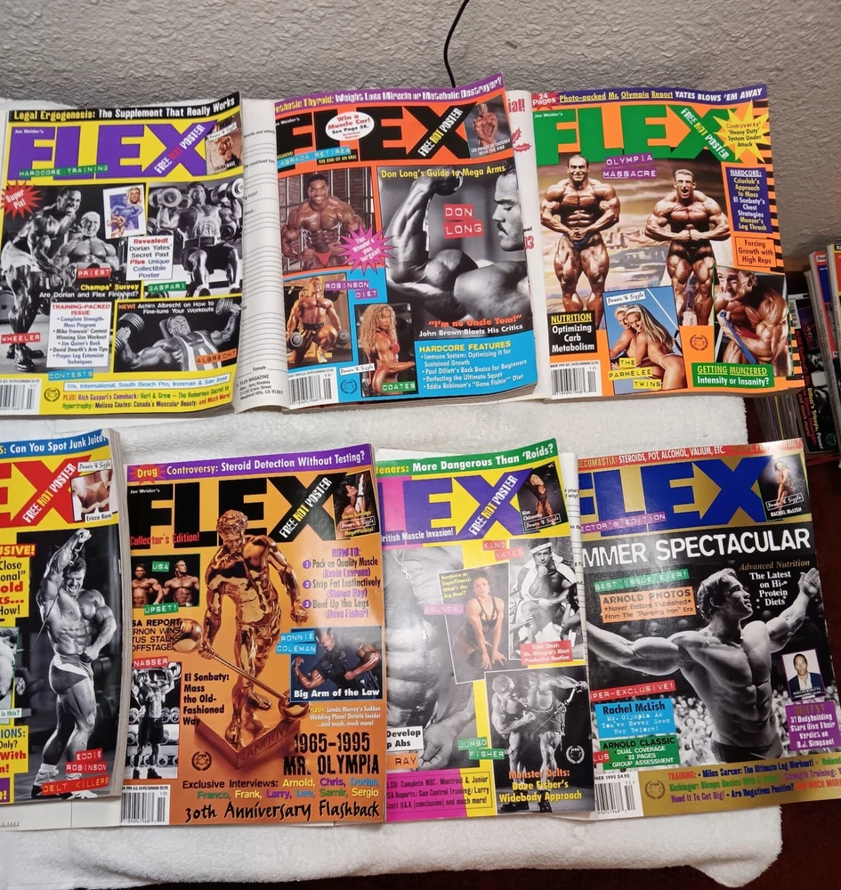 This complete set of 12 Flex magazines from 1995 is a must-have for anyone interested in women's health, celebrity lifestyles, and fitness. Edited by Joe Weider, these magazines cover a wide range of topics including art, modelling, and sports. The set includes issues from June, October, December, May, September, March, July, January, February, April, August, and November. Each magazine is filled with informative articles and stunning visuals that will keep you entertained for hours. Whether you're a fan of fitness or simply interested in the lives of famous people, this set has something for everyone. Don't miss out on the opportunity to own a piece of history. Order your copy of this complete Flex magazine set today!