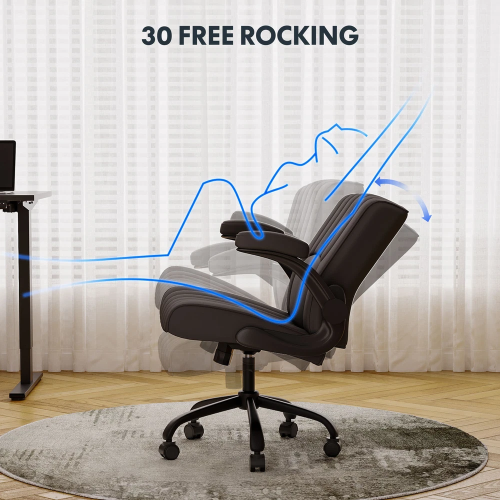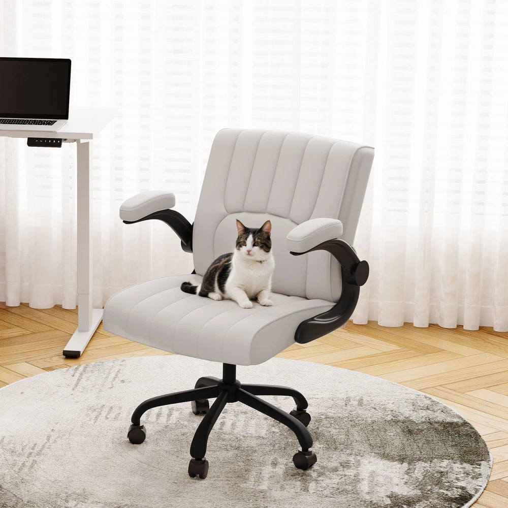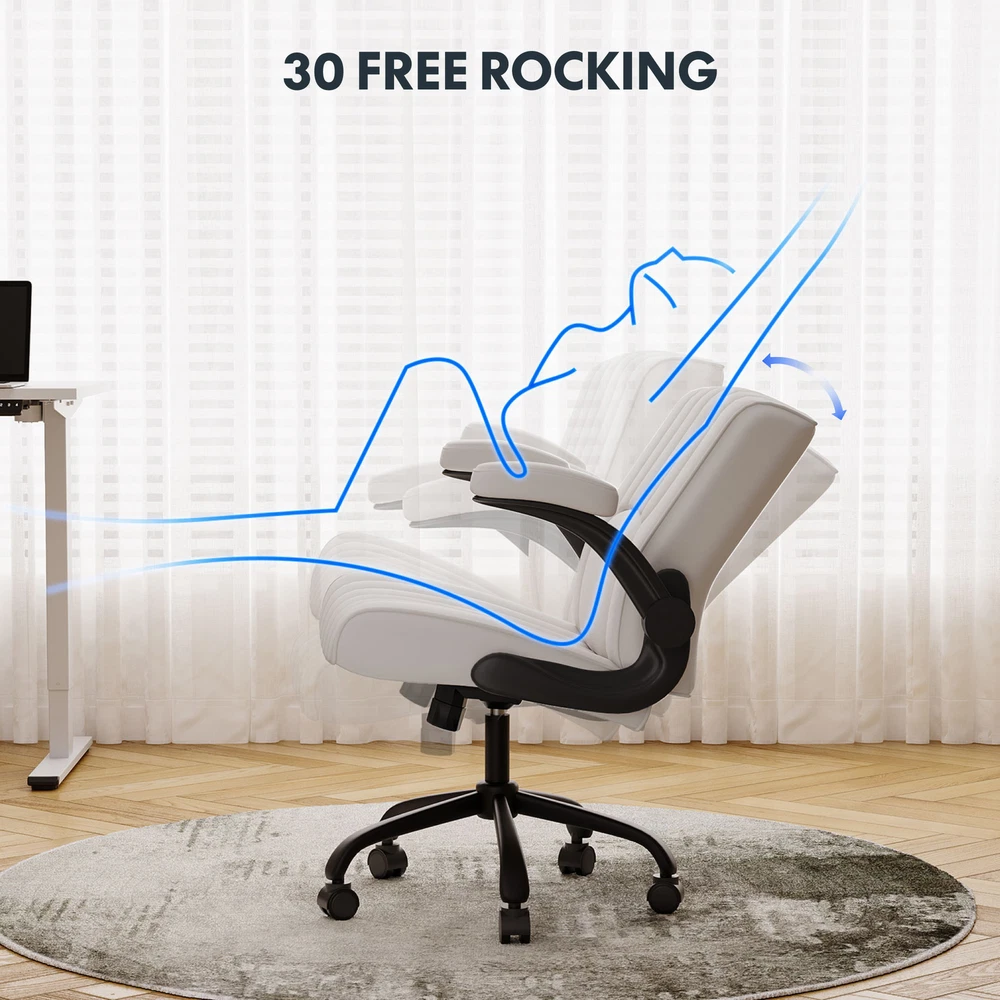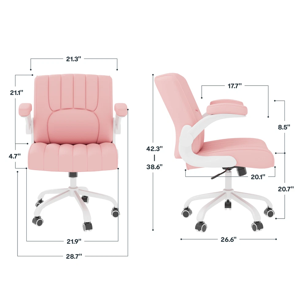 【 Chair with Different Options 】Our chairs come with various selections, including seat cushion sizes, weight capacity, and armrest designs. Opt for a larger cushion for more space or a chair without armrests to save room. 【 Versatile Home Office Chair 】You can use the chair as a computer chair, gaming chair, office chair, or task chair to meet diverse needs. Plus, the wheels are compatible with surfaces like carpet, tile, and wood, ensuring smooth and effortless mobility. 【 ECO Pet-Friendly Leather 】The desk chair’s surface is covered with premium PU leather, offering excellent waterproof and wear-resistant properties. Unlike fabric, it’s easy to clean with a damp cloth, providing both durability and convenience. 【 Sturdy Base 】Designed with a sturdy engineered wood seat base, this home office chair ensures reliable weight-bearing and stability, giving you peace of mind when using it. 【 Versatility 】Enhance your work or leisure experience with this multi-functional chair. Featuring 3.7 inches of height adjustment, a 360-degree swivel, and a 30-degree tilt angle, it offers customizable settings for maximum comfort. Details: Product Height: 38.6" - 42.3" Product Dimensions: 26.6" D× 28.7" W× 42.3"H Adjustable Seat Height: 20.7" - 24.4" Weight Capacity: 280 lbs Lifting Mechanism: Gas Spring Seat Material: Upgraded Foam Frame Material: PU Leather Special Features: Comfy Leather Cushion, Adjustable Height, Reliable Weight Capacity, Chair for Men and Women, Suitable for Adults and Teens