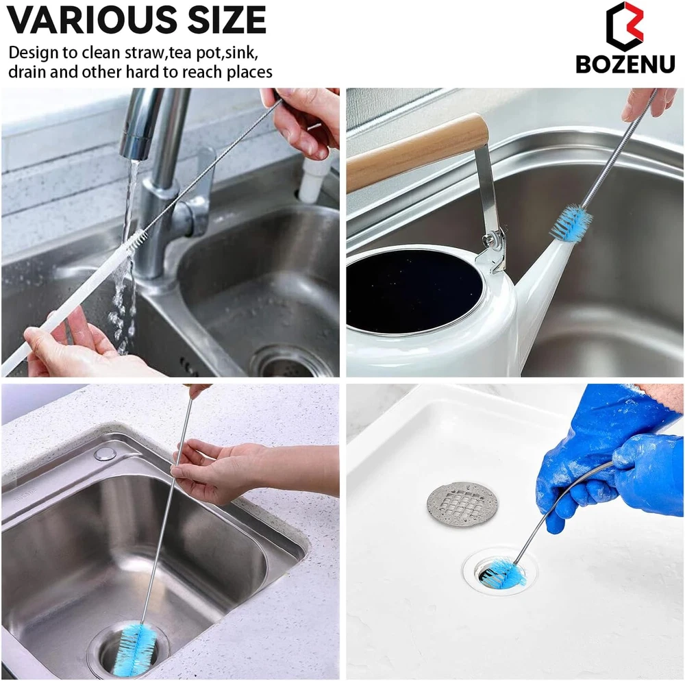 Store New Arrivals Add to Favorite View Feedback Contact Flexible Drain Brush, 66 Inch Long Double Ended Hose Pipe and 58 Inch Tube Description Item model number DB-116 Unit Count 4.0 Count Product Dimensions 66"L x 1.2"W x 1.2"H Number of Items 4 Color Blue Brand Bozenu Material Stainless Steel Country of Origin China Handle Material Stainless Steel Item Weight 1.76 ounces Shape Round Surface Recommendation Floor, Tile, Plastic, Stone Included Components Handle Special Feature Long Handle, Portable, Reusable, Bagged, Hanging Loop Specific Uses For Product Bottle Manufacturer Bozenu You will get 1 pcs 66" dual-ended drain brush with 0.6" and 1.2" diameter bristle heads, 1 pcs 58" pipe brush with 0.5" diameter bristle head, 2 pcs 8" straw cleaner brush with 0.4" diameter bristle head. These premium drain brushes are made of the strongest material which is food grade. It's durable and will not rust. The bristles are made of nylon which is both resistant and easy to clean. Get around any surface or maneuver any depth. Simply insert it into the area to be cleaned, swirl and wash. With the long, soft but durable nylon bristles, it can be used to clean each size of pipe you have and will not damage the inside of tube. Flexible drain brush works great at cleaning around the stopper and will reach the u bend with no problems Works great at cleaning around the hard-to-reach narrow pipes or tubes. Perfect cleaning tools, ideal for all aquarium filter, fish tank, feeding tube, refrigerator drain, lily pipe, shower sink drain cleaning, hummingbird feeder. Product Description ABOUT US We offer the best prices around on high quality products. Our E-store includes media such as books, movies, music and games while offering electronics, toys, sporting apparel, clothing, tools, general home, garden items and more. SHIPPING We are always working hard to ensure your package arrives as soon as possible. Please understand that some factors like weather, high postal traffic, and the performance of shipping companies are outside of our control. We offer free shipping to the lower 48 states and ship within 5 business days of payment, usually sooner. We do not accept P.O. Boxes. Please provide a physical address. RETURNS We offer a 30-Day Return Policy on items which you are not completely satisfied with. You have the option for a full-refund or an exchange of the item. No returns are available on items shipped outside of the USA. PAYMENT We accept PayPal. CONTACT US This page content is yet to come Please ad us to your favorite seller and visit again later Thank You CUSTOMER SATISFACTION We try our very best to make sure every customer is completely satisfied. If there's a problem, message us! We're happy to help.