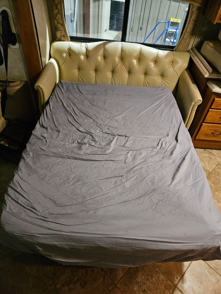 Uses flexsteel 68 in couch with pull out bed 1 cushion has scratches. See pictures. Out of 08 holiday rambler can help with setting up shipping