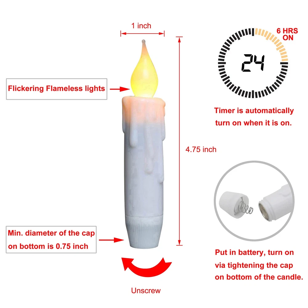 Flickering LED Taper Candles Battery Operated Flameless Drip Wax Effect With Timer