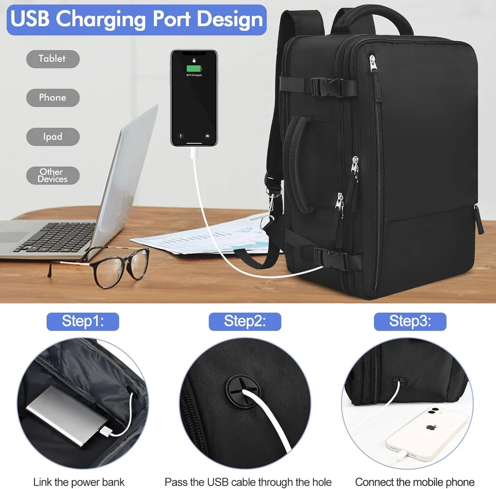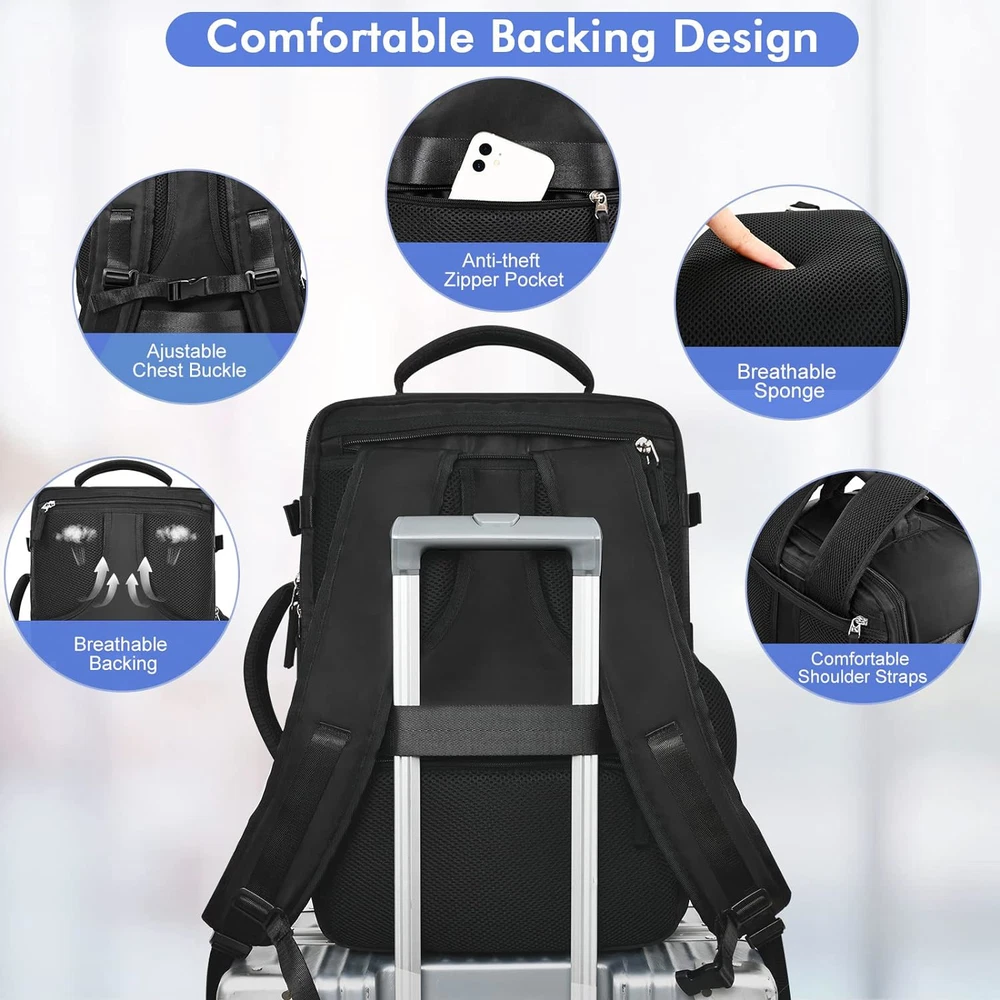 Flight-Approved Black Travel Backpack for Men & Women Carry-On Bag