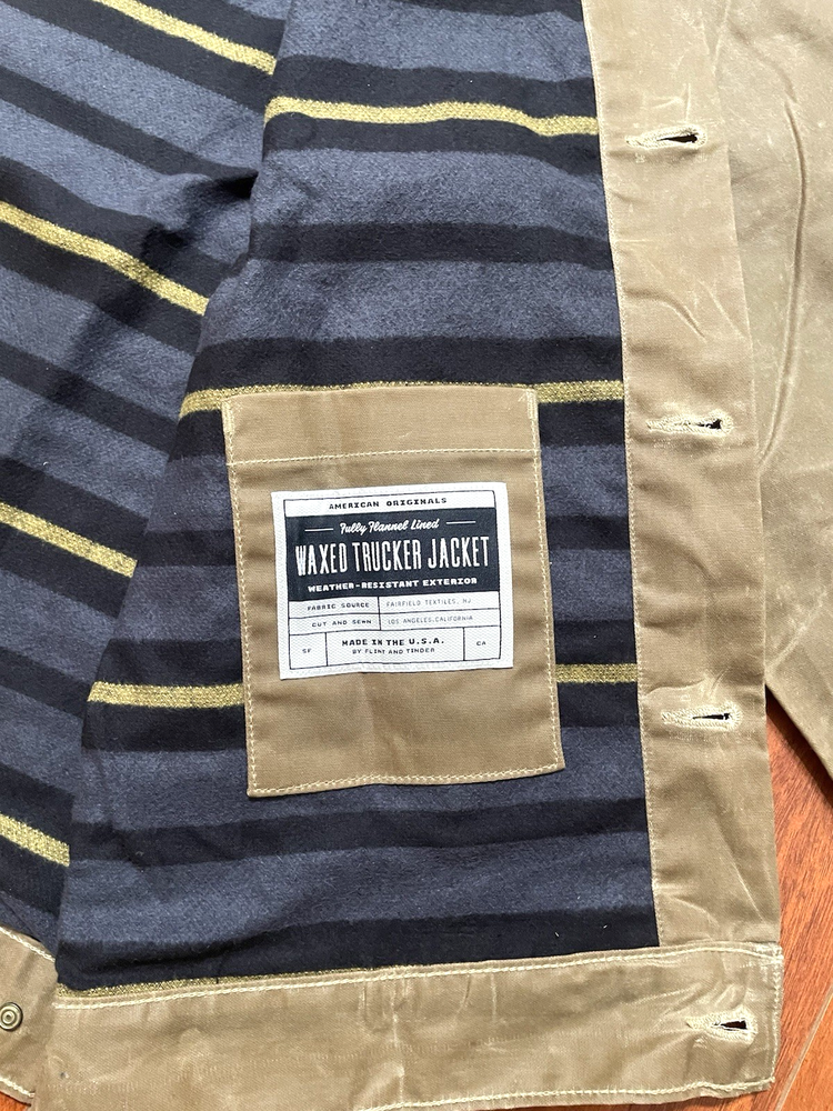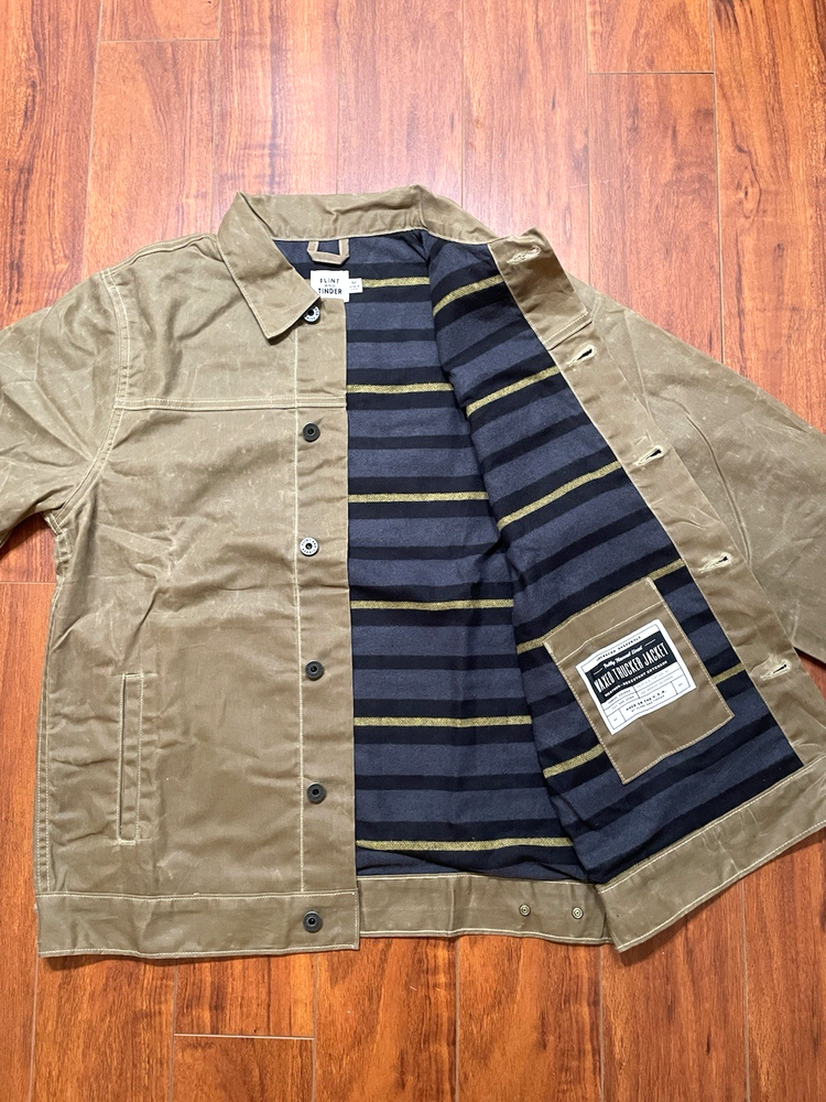 HomeFlint & Tinder Waxed Flannel-Lined Trucker Jacket Mens Medium Field Tan