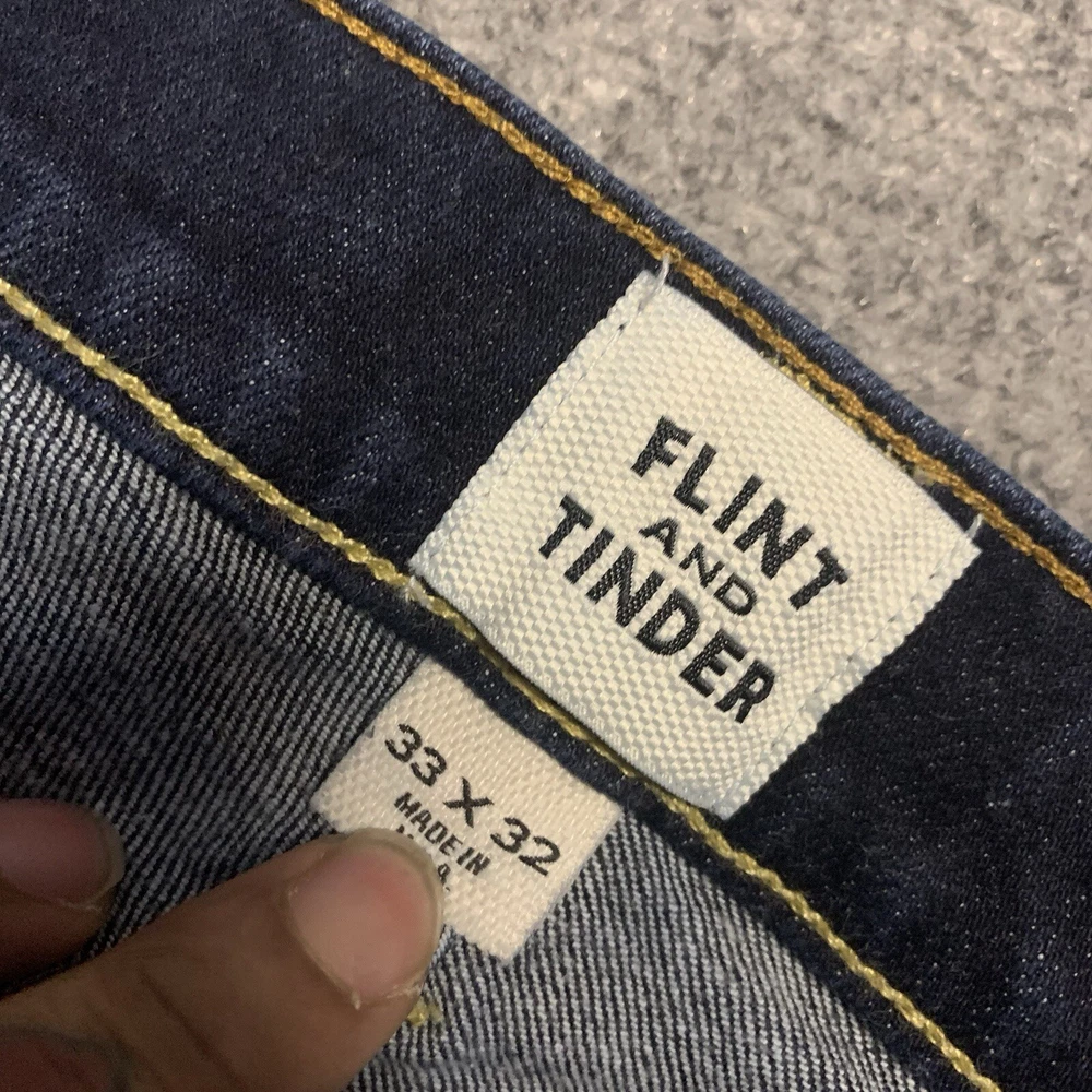 Flint and Tinder Jeans Mens 33x32 Blue Denim Stretch Straight Slim Fit Preppy
