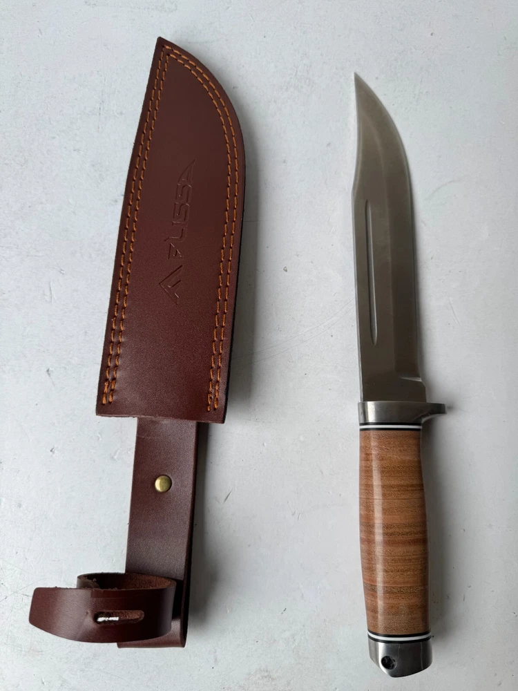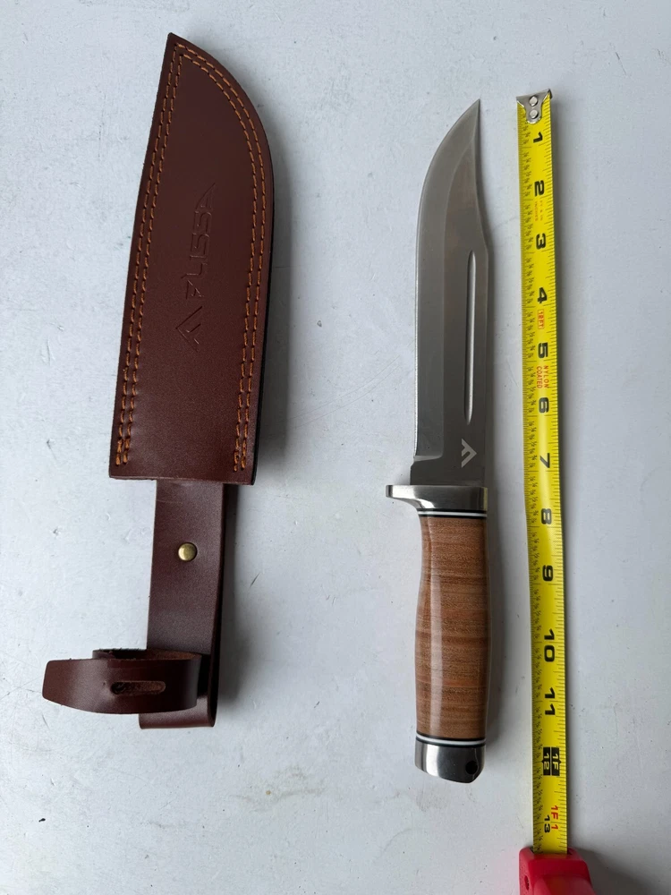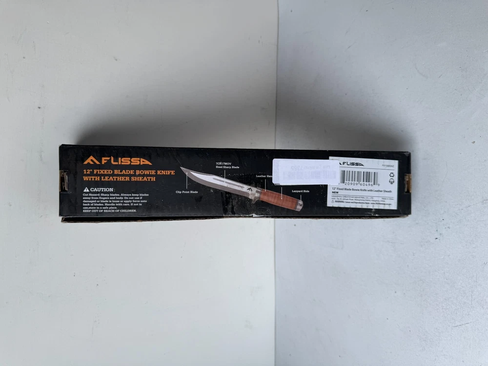 Flissa 12" Fixed Blade Bowie Knife Full-Tang Knife Cow Leather Sheath Handle Description Flissa 12" Fixed Blade Bowie Knife Full-Tang Knife Cow Leather Sheath Handle. Product Detail • Brand : Flissa • Handle Material : Leather • Blade Color : Silver • Type : Bowie Knife Please message me if you have any questions.