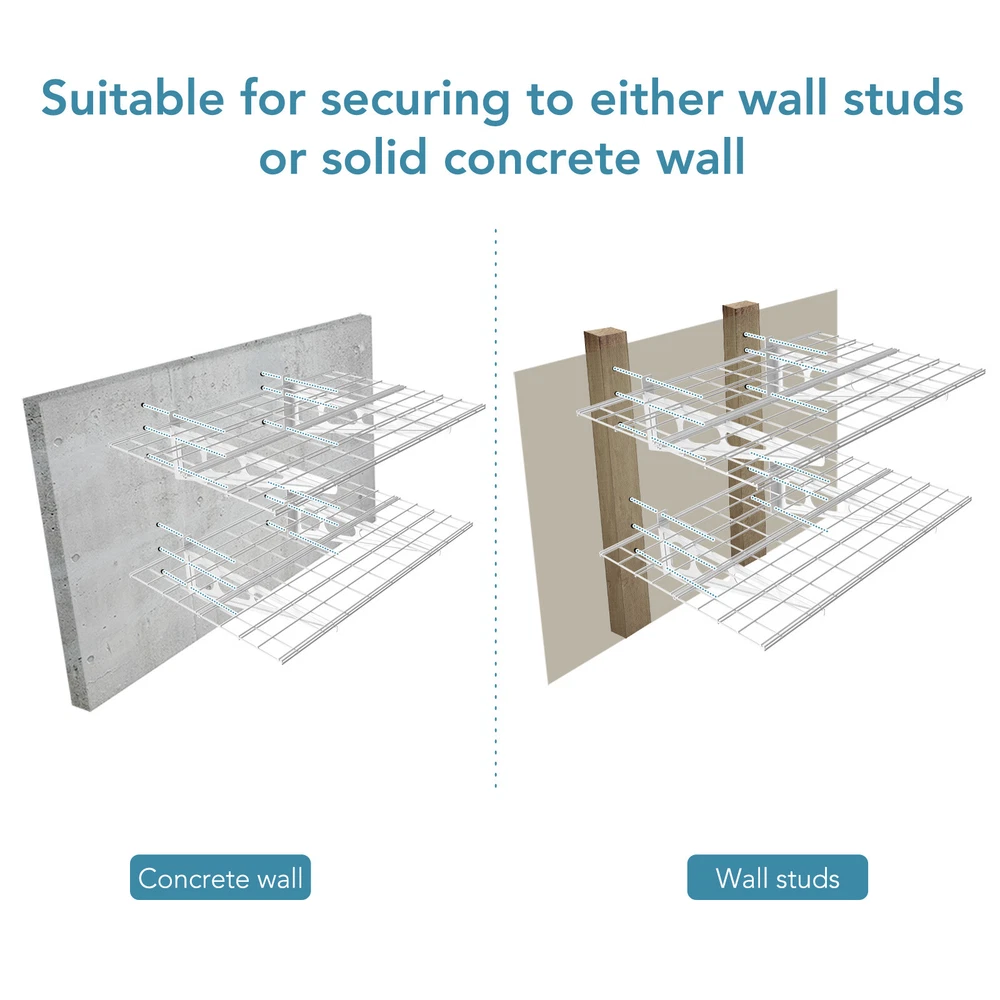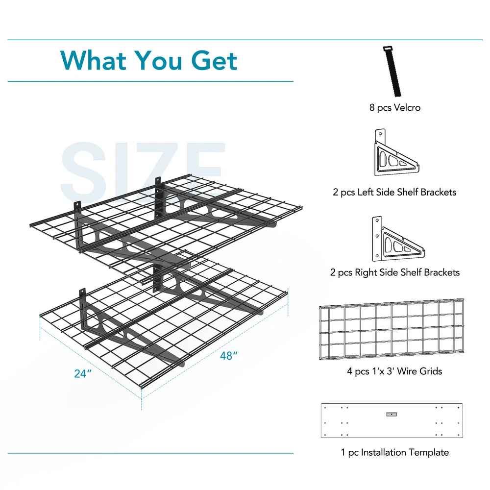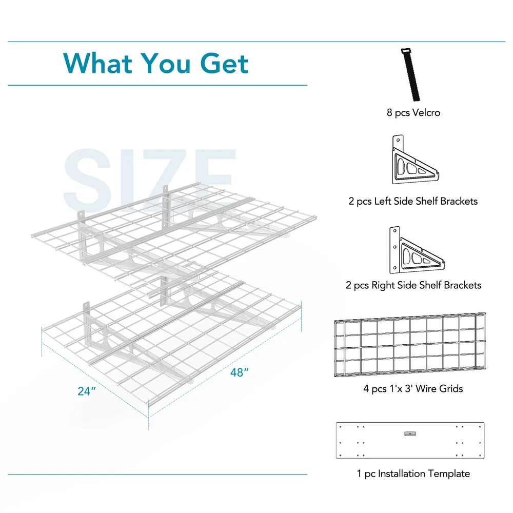 Home Payment Shipping Return Policy About Us Contact Us Feedback Title Other Standing Desk Desk Riser & Desk Converters Desk Bike Ergonomic Office Chair Fitness Key Features Heavy gauge cold-rolled steel Easy one-person installation More stable with the buckle design with velcros Top quality mounting screws Compatible with different joist spacing Compatible with wood joists and concrete ceiling Easy one-person installation with all hardware included Installation Template helps mount holes; Bubble Level helps get perfect horizontal location. (Assembly needed DIY project - Composition of four 1'x3' shelves per tier) More Sturdy and Stable the buckle design with velcros prevents the brackets from falling or bending. Heavy gauge steel construction provides safety loading up to 400lbs total. High quality screws provided. All hardwares have gone through strict tests. Can NOT be mounted to metal wall. Suitable for wood studs/joists and concrete wall. Item Weight: 35.8 pounds Product Dimensions: 24 x 12.2 x 48 inches About us Return Policy Warranty Info Shipped About us Our Mission Make healthy life easier. To introduce creative solution geared towards creating better working environments that promote efficiency, productivity, and wellbeing. The goal is to help our clients achieve new heights of wellness and strike the perfect work-life balance through innovative and ergonomic solutions. Our Products We offer a wide range of ergonomic products for your home and office. All products are carefully engineered using the best materials to boost health and performance. Our Guarantee FlexiSpot never compromises on quality. Our products have been thoroughly tested with numerous Fatigue tests, Pressure Tests, Vibration Tests, and Temperature Tests. All of the products satisfy the most stringent qualifications around the world. Our Team We have over 600 innovative R&D engineers who imagine, design, and implement ergonomic workplace furniture solutions. Thanks to our R&D engineers, we have an impressive count of 1000 patents on record! At FlexiSpot, you’re guaranteed exceptional customer service regardless of your geographical location. Our customer service team is available 24/7 to attend to your needs all across the globe. We have numerous warehouses around the globe, including 13 in the US, guaranteeing a quick and convenient delivery experience for our customers. Return Policy General information for all returns All items must be returned in their original factory packaging and in “like new” condition. Items returned in other than “like new” condition will be subject to a 10% restocking fee. The restocking fee will be deducted from your refund. A Return Merchandise Authorization (RMA) number is required for all returns. Returns are processed and credited within 7 to 10 days of receipt. Returned items are subject to inspection prior to issuing a refund. You’ll be responsible for shipping the products to the return address provided with the RMA number. All returned items must be disassembled and repackaged as they were originally received. Items not returned in this condition may be subject to additional fees. We strongly suggest using a traceable and insurable shipping method when making your return. We are not responsible for returns lost or damaged in transit. 30-day risk-free policy You are free to return any item within 30 days of receipt. A 30-day risk-free policy applies to all items. No restocking fee is applied for items returned in “ like new ” condition. No shipping fee is applied for the return of the item. The 30-day risk-free policy is only for orders within the continental United States. Return after 30 days of receipt You are also free to return any item after 30 days of receipt. We want you to be completely satisfied with your FlexiSpot purchase, and we strive to provide expert guidance to help you choose the best possible products for your needs. We also understand that sometimes a product just doesn’t quite fit. That is why we make returns easy. Please send us an email with your return request along with the order number included. Also, please let us know the reason for your return. We will issue a Return Merchandise Authorization (RMA) number. Warranty Info Warranty Your satisfaction is our first priority. That's why we're pleased to offer warranty that covers defects in material or workmanship on all new FlexiSpot products This warranty applies solely to the original purchaser and is non-transferable. Only consumers purchasing FlexiSpot products from authorized FlexiSpot retailers or resellers may benefit from our limited warranty. What is Covered? FlexiSpot Height Adjustable Desk Frames All height adjustable desks purchased on or after April 1, 2022 include a limited, non-transferable warranty. We hereby cover all FlexiSpot height adjustable desks for a period of: 15 years: all metal and mechanical parts and components, including motors and electrical components of FlexiSpot Standing Desk E7 FlexiSpot Standing Desk E8 10 years: all metal and mechanical parts and components, including motors and electrical components of FlexiSpot Standing Desk E3 FlexiSpot Standing Desk E5 5 years: all metal and mechanical parts and components, including motors and electrical components of all other height adjustable desk except for E3, E5, E7, and E8. Desktop All Bamboo desktops purchased on or after April 1, 2022, include a 5-year warranty. All Chipboard, Fiberboard, Solid wood and Solid wood texture desktops purchased on or after October 5, 2016, include a 2-year warranty. Desktop FlexiSpot Sit-Stand Desktop Workstations FlexiSpot Sit-Stand Desk Converters have a 5-year warranty for the frame and desktop. And a 3-year warranty for the gas spring system and other mechanisms. Desk Bikes All desk bikes purchased on or after October 5, 2016, include a 1-year warranty. Chairs All FlexiSpot chairs purchased on or after October 5, 2016, include a 3-year warranty. Adjustable bed frame Al