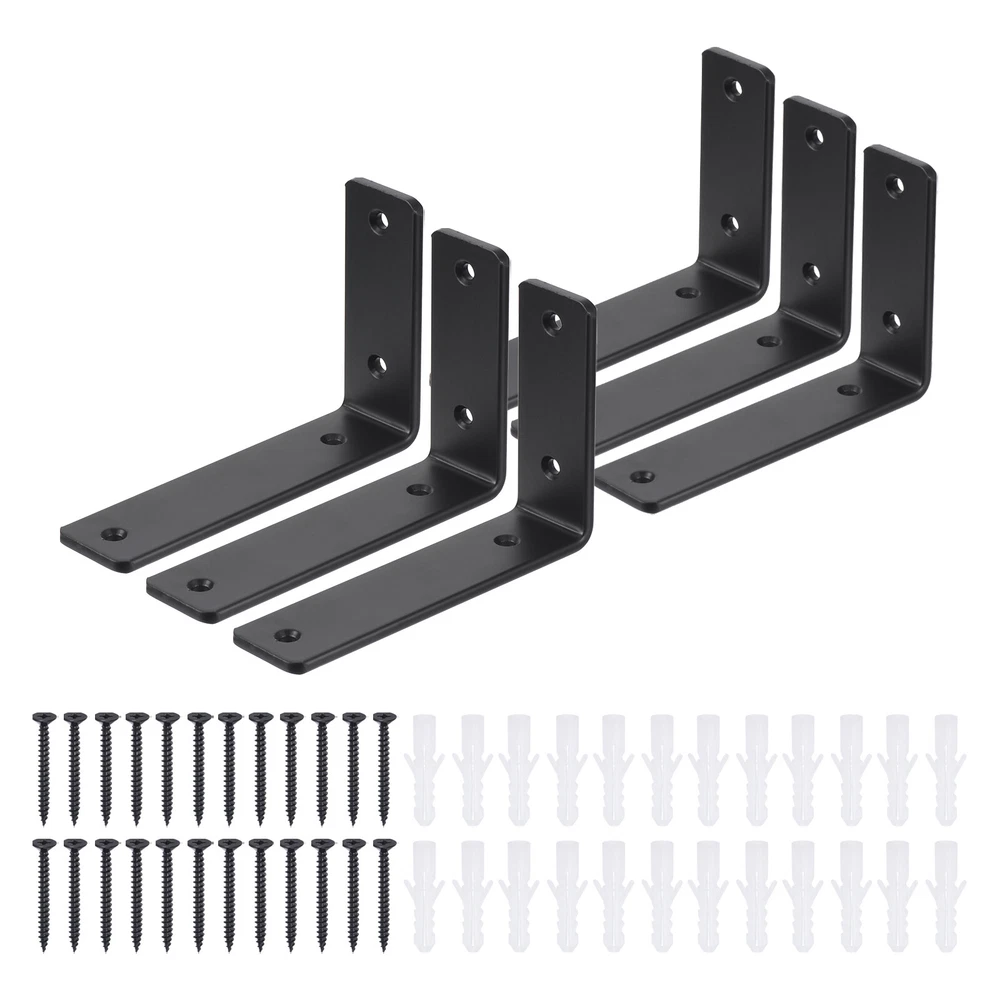 Floating Shelf Brackets 6 Inch, 6 Pack Iron L Shelf Brackets Supports, Black