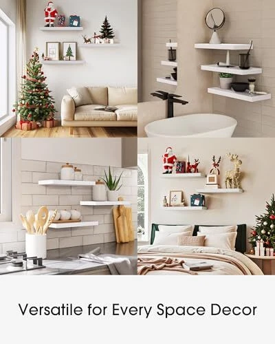 30 Days Return Policy Fast Delivery Trusted seller Floating Shelves for Wall, Wall Mounted Rustic Wood Shelves for Bathroom, Bedroom, Living Room, Kitchen, Hanging Shelf for Books/Storage/Room Decor with 22lbs Capacity (White, Set of 3, 16in) Product Description Engineered Wood Modern & Simplistic - Create a personalized display with our sleek wooden floating shelves that offer a contemporary design Protection Sealing - Each shelf is treated with a protective sealant to prevent warping or damage Versatile Design - These shelves can be easily placed in any room, from your cozy bedroom to your functional kitchen or home office,christmas decorations Increased Load-Bearing - Our shelves can hold up to 22 lbs, allowing you to display your favorite objects with confidence Larger Size - Measuring 16 inches in length, our shelves provide ample space for both storage and decoration Shipping Returns Payment Shipping Shipping is FREE to all addresses other than APO/PO boxes in the lower 48 states. All our stock ships from US-based warehouses. Shipped via USPS or UPS (depending on location and package weight) Unless stated otherwise, all orders will ship within 24-72 hours of your payment being processed. Check our feedback to see the great reviews of FAST shipping we offer. Returns As our valued customer, we will do our best to make sure the product you receive arrives to you on time and as expected. If you are not satisfied with your purchase, please contact us within 30 days of receiving your order to process a return. Payment We currently accept payment via eBay managed payments only. Once payment is cleared, we will dispatch your shipment within 1-3 business days. Please refer to the "Shipping" tab for more information regarding shipping speed to your destination.