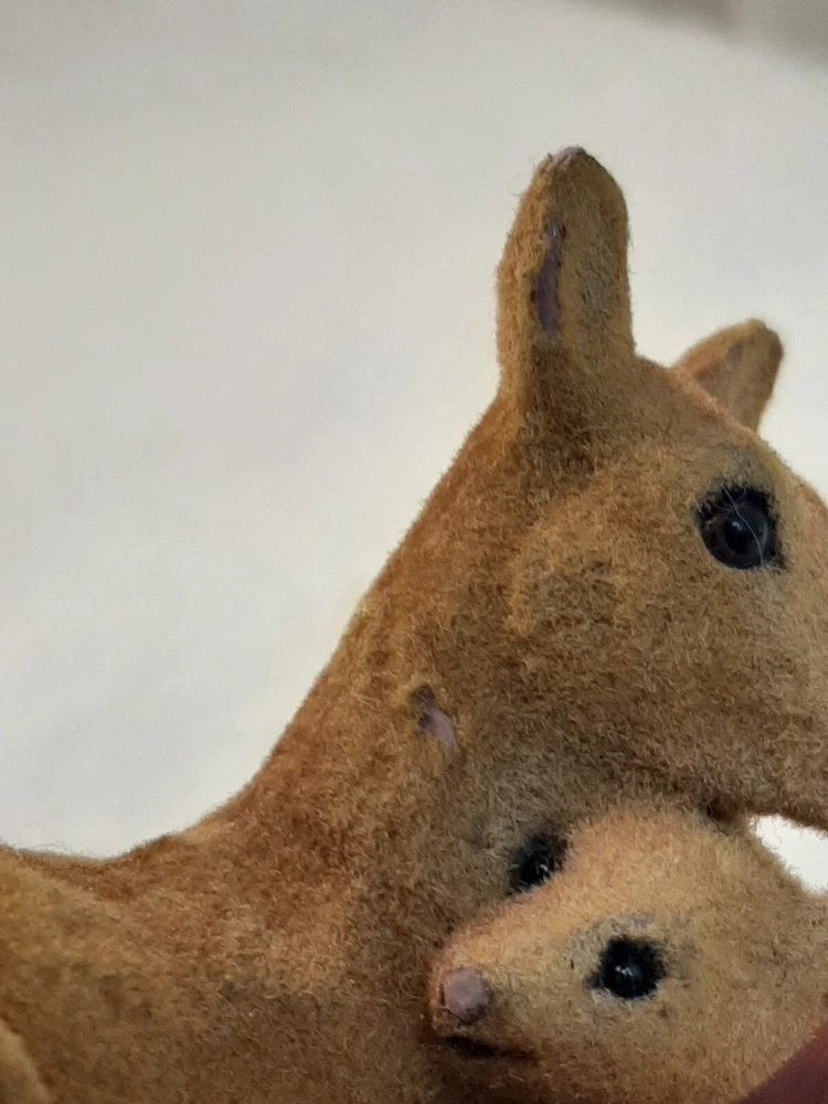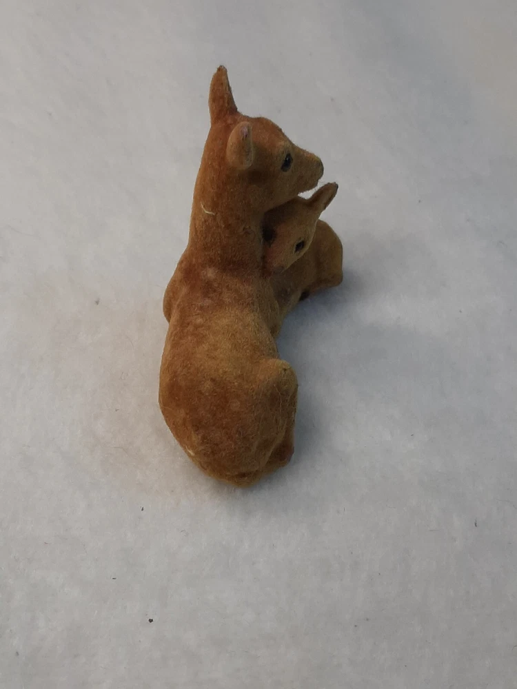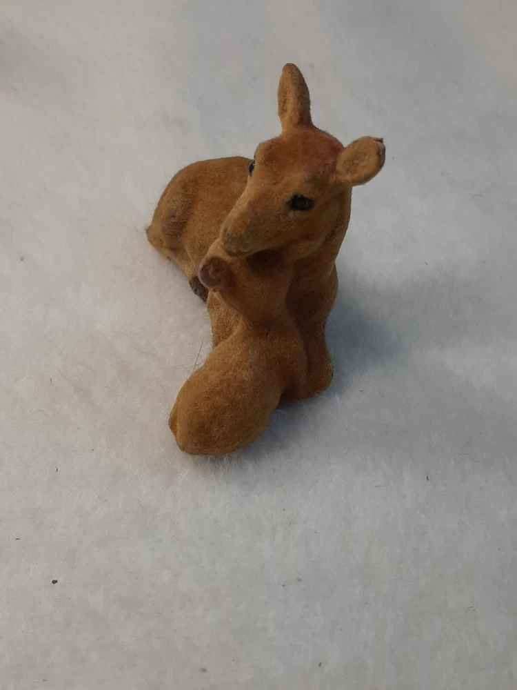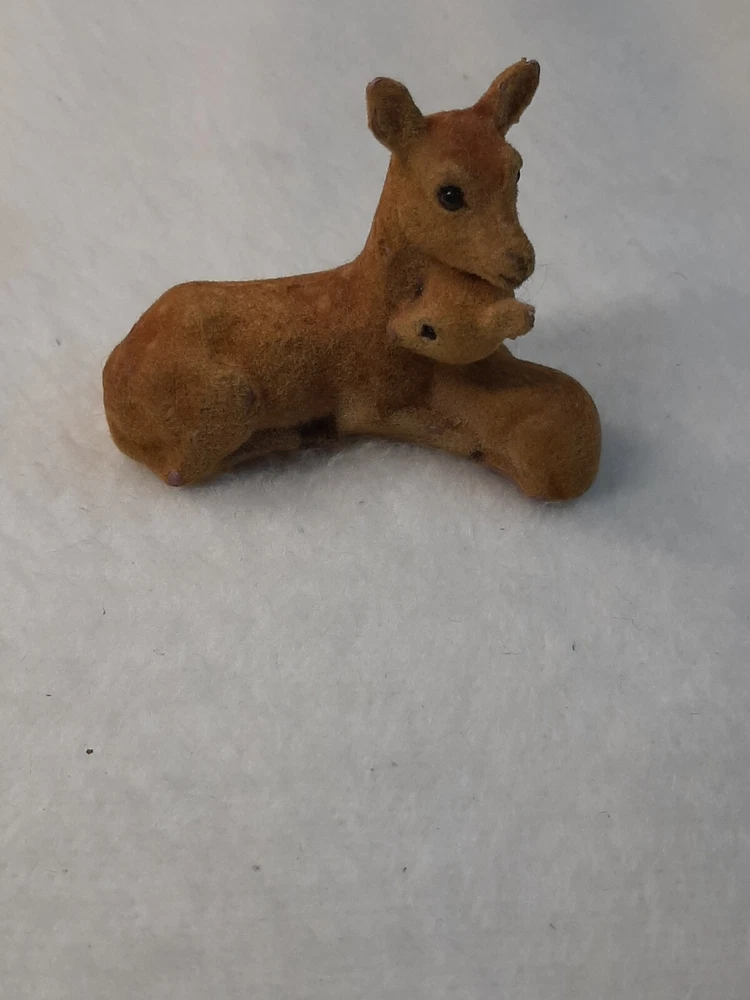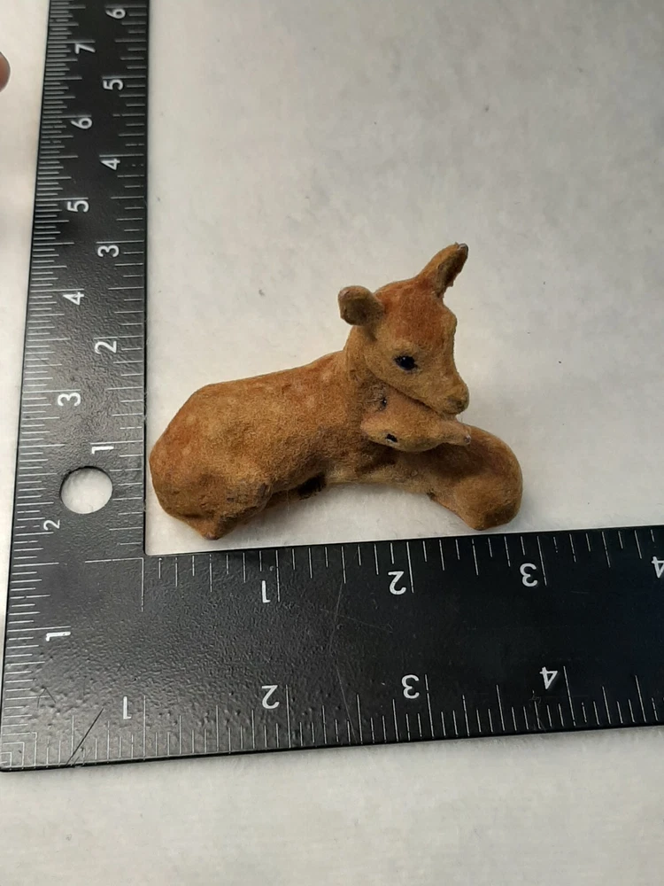 Character Family: Deer Artist: NA Signed: No Type: Flocked Deer Figure Handmade: No Sku #: Box Y Size: Small Character: Deer Shape: Figural UPC: N/A Subject: Momma & Baby Deer Number in Pack: 1 Collection: Deer Country/Region of Manufacture: Unknown Original/Reproduction: Original Pattern: solid Battery Type: NA Theme: Animals & Dinosaurs Vintage: Yes Department: Adults Animal Class: Deer Features: Plastic Eyes, Flocked Power Source: NA Signed By: NA gtin13: N/A Time Period Manufactured: unknown Item Weight: NA Style: Retro Color: Brown Finish: Flocked Occasion: All Occasions Material: Flocked Brand: Unbranded