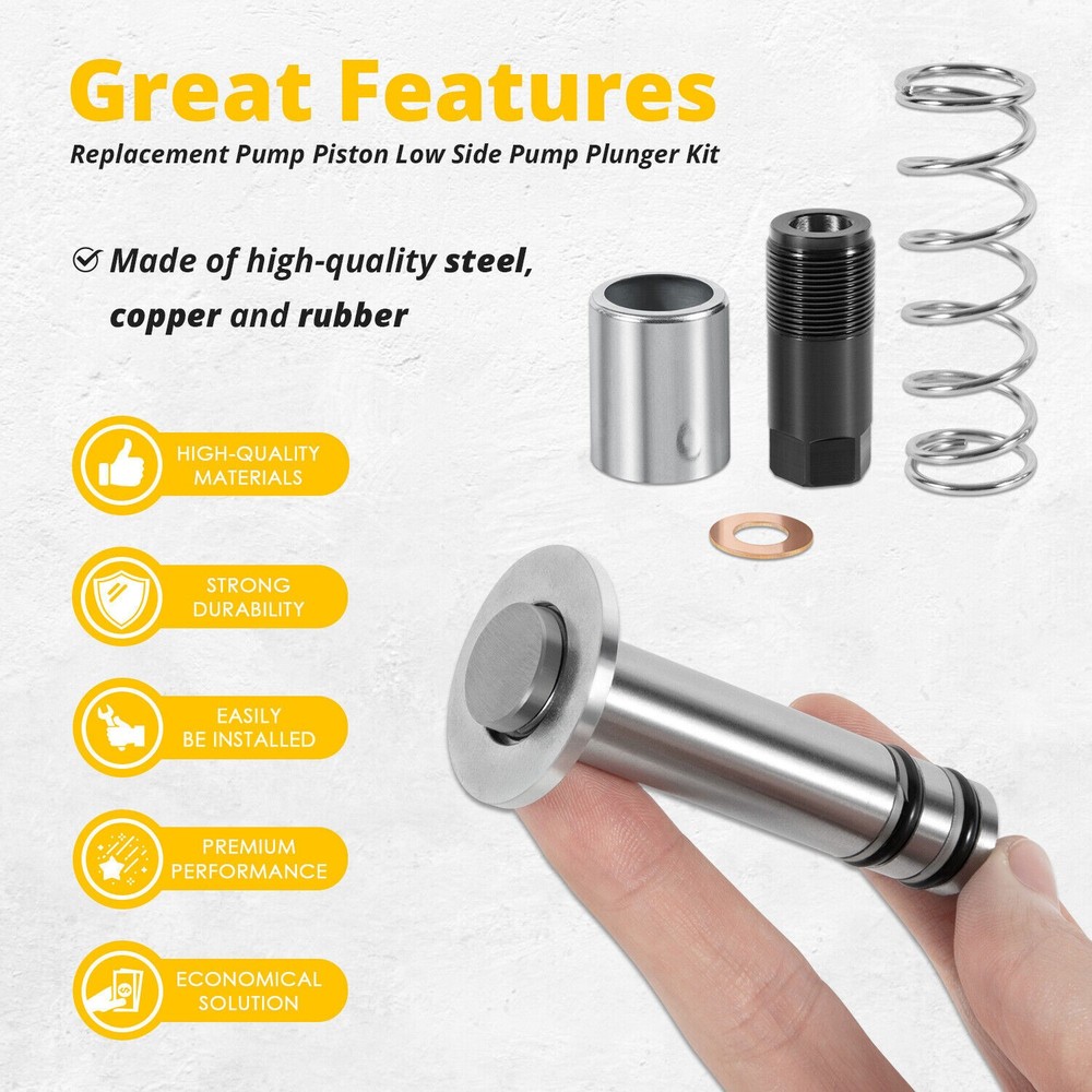Floor Jack Low Side Pump Piston Kit for Harbor Freight Costco Arcan Matco Application: This Pump Piston Replacement Kit is compatible with 3 & 3 1/4 t. Jack. Fit for the following brand: ARCAN HJ3000, COSTCO, HARBOR FREIGHT, POWERBUILT, NORCO, CORNWELL, ASTRO, MATCO, AFF, JACKCO, SUNEX, NEIKO, NEIKO PRO. Direct Replacement: It is a perfect pump plunger replacement kit — “LOW SIDE” —(“smaller of the two plungers”). If you are looking at the floor jack from the rear (casters) the plunger listed here stays to the left. Note: The plunger diameter is smaller than the one to the right of it. Item Size: Pump plunger: 0.58"-x 2.88 Long with seals, Cylinder: 1.05" x 2.60" long. Capacity per Stand: 3 1/2. Superior Material: This Pump Piston Replacement Kit is made of high-quality steel, copper and rubber. With strong durability, corrosion resistance and anti-rust performance. Better quality allows it to be used for a longer time. Satisfaction Guarantee: We are committed to providing excellent products and the best service for our customers. If you are not satisfied with the product, you can simply return it. We support a 60-day full refund on return and a 12 month's warranty. Package Details: 1 * Pump Plunger (with 2 seals), 1 * Cylinder, 1 * Spring, 1 * Copper Packing 1 * Retainer. Instruction manual is also included Payment Shipping Return & Warranty Leave feedback Contact us Payment 1.We accept PayPal payment and many other payments. Items will be shipped within 1 business day of receiving full payment. Shipping 1.All items will be shipped out in 1 business day,no expedited service available. 2.Our items will be delivered within 4-6 business days. 3.We have multiple warehouses in US, and will choose the nearest one for shipping, according to your address and our inventory Return & Warranty 1. 60 Days Free Returns, please notify us within 60 days after you've received your purchased item. 2. All return requests must be submitted through your eBay account. 3. Return shipping shall be the responsibility of the buyer. We pay the shipping when it is our fault. 4. Items to be returned must be in resalable condition. 5. All returns are for refund ONLY. No exchange accepted. Leave feedback 1.If you are not satisfied for any reasons, please do not be so quick to leave negative/neutral feedback. We work hard to make sure EVERY CUSTOMER 100% SATISFIED and resolve any problems for you and always leave positive feedback to all our customers. 2.If you are satisfied with the product you received, please kindly leave us a positive feedback and 5 scores DSR. Thanks! Contact us 1.Any Questions,Just feel free to contact us on eBay.We will reply you in 1-2 business day.