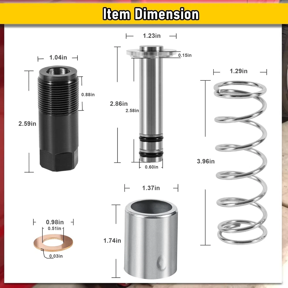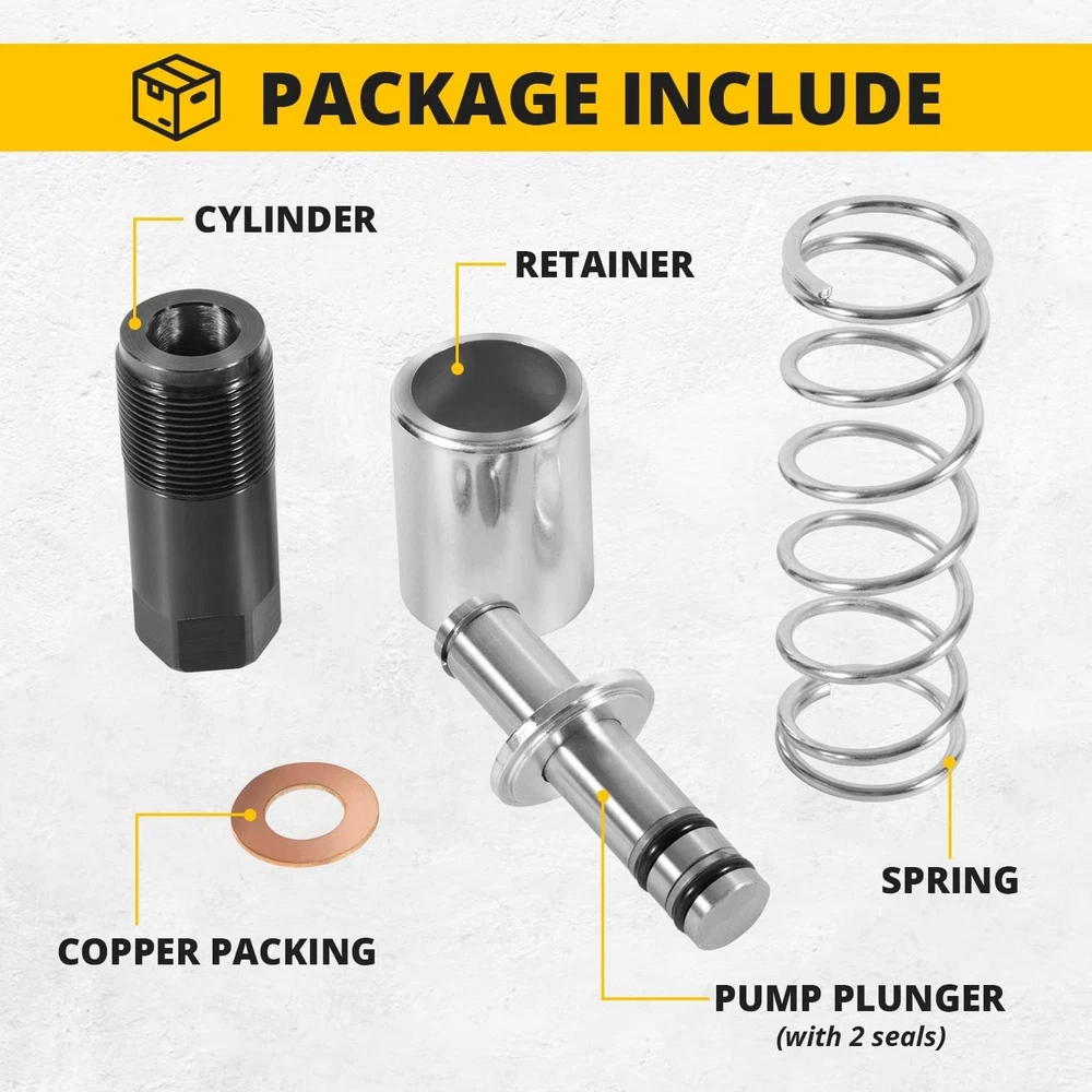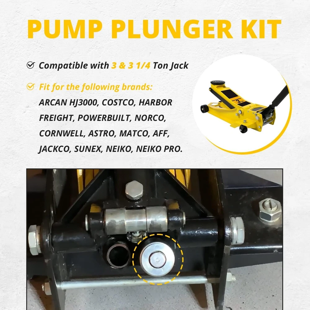 Floor Jack Low Side Pump Piston Kit for Harbor Freight / Costco / Arcan / Matco Wide Application: This Pump Piston Replacement Kit is compatible with 3 & 3 1/4 t. Jack. Fit for the following brand: ARCAN HJ3000, COSTCO, HARBOR FREIGHT, POWERBUILT, NORCO, CORNWELL, ASTRO, MATCO, AFF, JACKCO, SUNEX, NEIKO, NEIKO PRO. Perfect Replacement: It is a perfect pump plunger replacement kit — “LOW SIDE” —(“smaller of the two plungers”). If you are looking at the floor jack from the rear (casters) the plunger listed here stays to the left. Note: The plunger diameter is smaller than the one to the right of it. Superior Material: This Pump Piston Replacement Kit is made of high-quality steel, copper and rubber. With strong durability, corrosion resistance and anti-rust performance. Better quality allows it to be used for a longer time. Package Includes: You will get 1*Pump Plunger (with 2 seals), 1*Cylinder, 1*Spring, 1*Copper Packing and 1*Retainer. Instruction manual is also included. Satisfaction Guarantee: If you're not satisfied with the tool, simply return it for a full refund in 60 days.If you have any questions, please feel free to contact us and we will reply you as soon as we can. 1. Payment methods accepted: Payoneer. Our payoneer account allows you to pay by credit card, debit card and your paypal balance. 1. We ship items to Your ebay address.Please make sure your ebay address is correct before you pay, cause it cannot be changed once the order shipped out. 2. All of our items are shipped from our Warehouse in USA. 3. Please feel free to contact us by ebay "Contact member" if you cannot get your order on time. 1. Return to us within 60 days from the delivery date for exchange or refund. Refund will be given as Money back or item exchange (buyer's choice). 2. Return shipping fee is the responsibility of buyer unless the return is a result of our mistake. And all NON-seller mistake returns for refund are subject to 20% re-stocking fee. 3. If you need return, please contact our customer service representative, let us know the detailed problem and send us some pictures for confirmation. 1.Please contact us via ebay using"Contact member". We will respond within 24hours or less.Thank you for your understanding. 2. We maintain high standards of excellence 5-stars and strive for 100% customer satisfaction! Positive Feedback is very important to us. 3. Pls contact us first before you leave Neutral or Negative feedback. We will do our best to solve the problem, thanks!