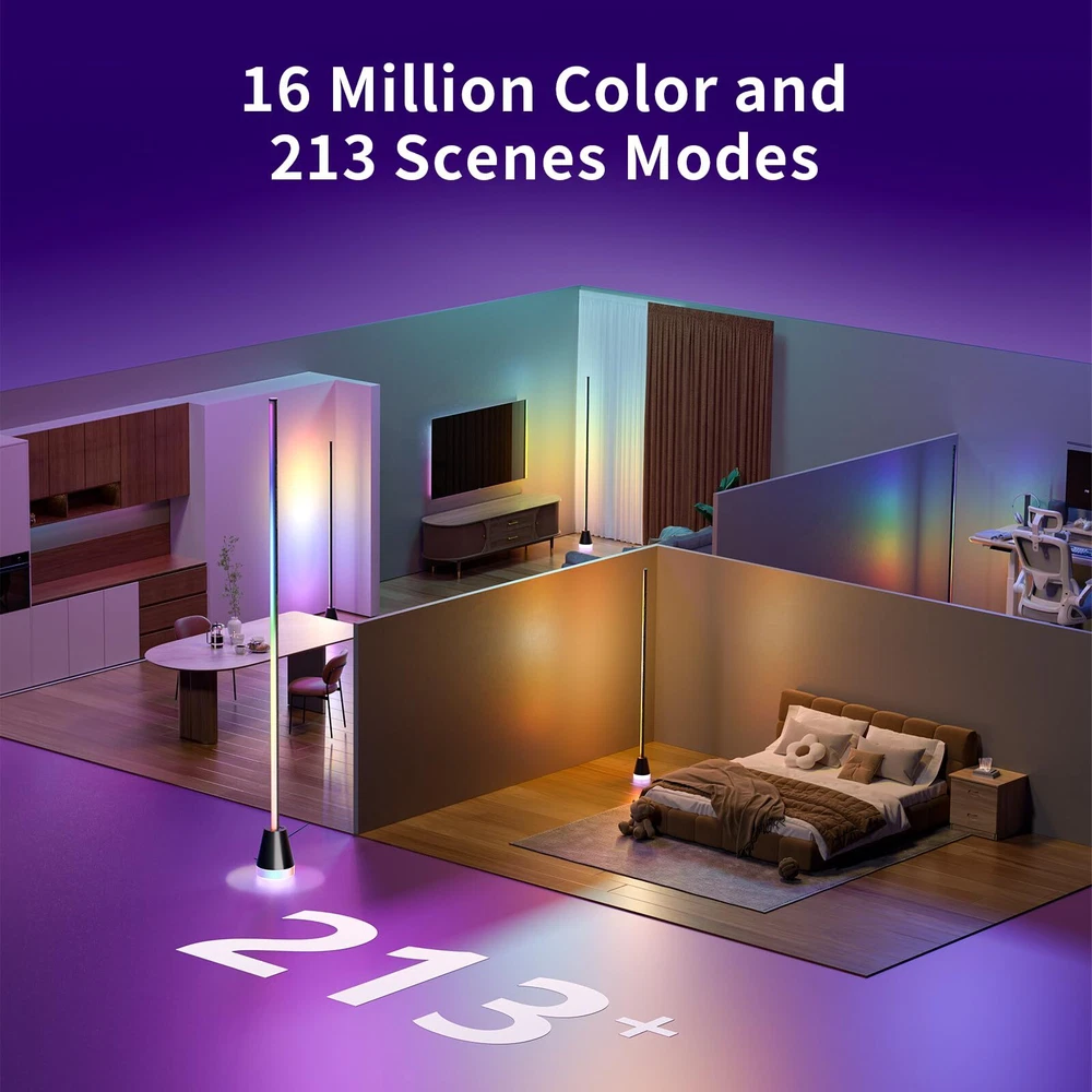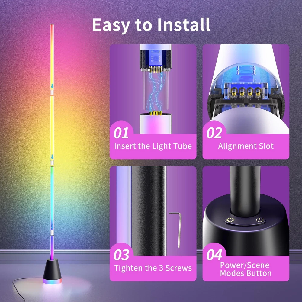 Luminous Base Design: Different from other floor lamps, corner lamp base can emit the same light according to the color of the light strip, which can illuminate a larger area. Create a more vivid atmosphere Smooth Lighting Effects: The lighting effect of this Christmas decorations is as smooth as flowing water, with no dark areas and lamp beads shadows, which makes the light projected on the wall more clearer and brighter Three Control Methods: You can use the remote, base buttons, or the "Magic-Lantern" APP to control this standing lamp. The APP allows you to select colors, adjust brightness and speed, set timers, and use multiple scene modes and music modes 16 Million Color Options and 213+ Scene Modes: You can choose the color and mode you want on the "Magic-Lantern" APP. DIY your ideal color to match your current mood and scene, making your life more vivid Music Rhythm Mode: The corner floor lamp has a built-in microphone, and the light will flash according to the volume, so you can intuitively feel the change of rhythm. Enhance your audio-visual entertainment experience Easy to install: Insert the three lamp tubes into the slots, tighten the 3 screws on the tube, and then plug in the power supply to enjoy the wonderful atmosphere brought by this Christmas decor. The whole install process will not exceed 3 minutes