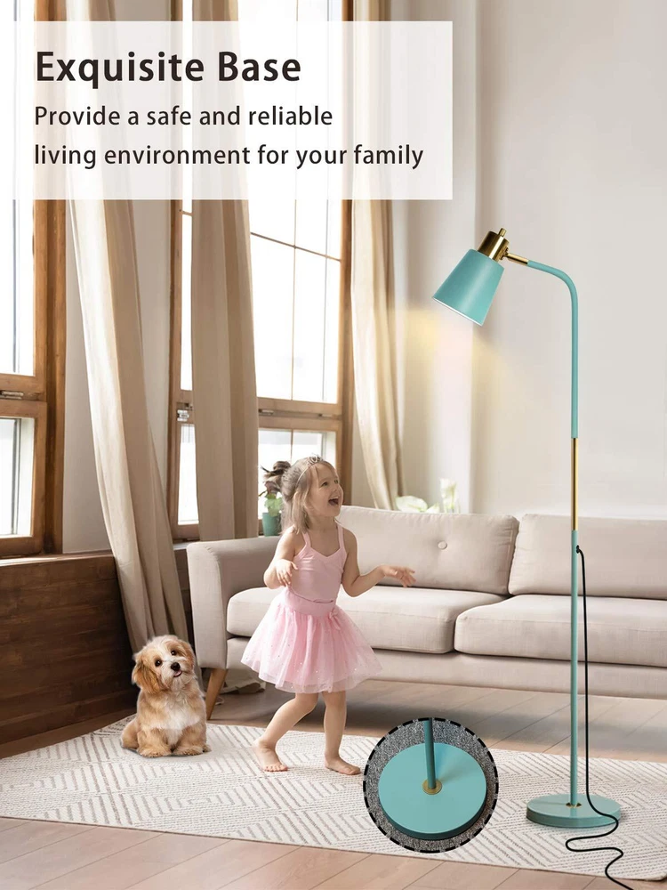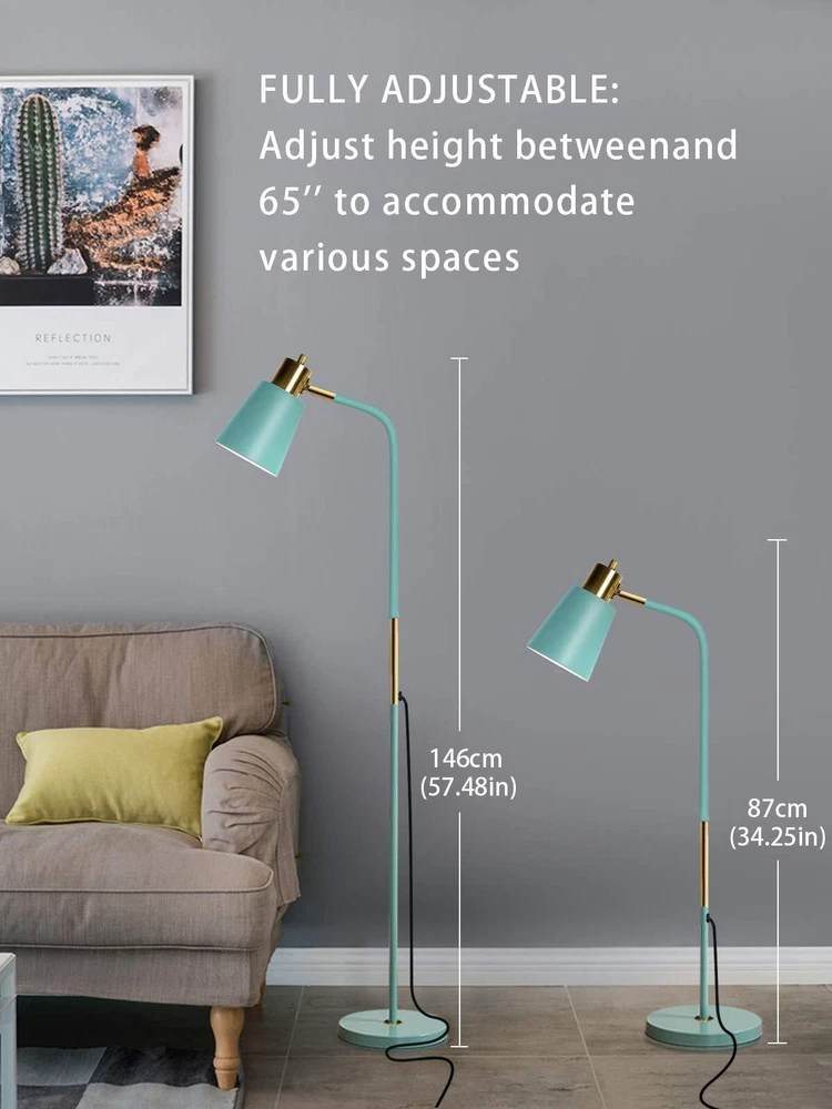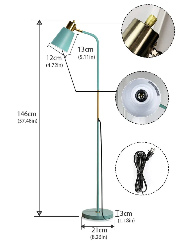 Floor lamp FREE STANDING MODERN LAMP SUITS MANY DECORS: The lamp is so modern that matches perfectly with your furniture. Lamp Shade provides more elegance and an added touch of modernity. The lamp emits warm, comfortable light, creating a comfortable space next to the book chair. The floor lamp is 57.48 inches tall. ADJUSTABLE FLOOR LAMP: Adjust height between 34.25'' and 57.48'' to accommodate various spaces. Create custom lighting moods by swiveling the lamp head 180° for uplight or downlight. Concentrate the light downward for reading or crafts such as sewing and knitting. This floor standing lamp is sure to add a vintage vibe to your space, no matter where you set it. LONG LASTING/ ENERGY SAVING: The standard base screw-in LED bulb (included) gives plenty of light to read by at night and is equivalent to about a 60w incandescent bulb but uses only a few watts of power. Note- the included bulb is not dimmable but it can be replaced with a smart bulb. SAVE SPACE and SAFE BASE: The base is very heavy. Safe for your baby and pets. The base to provide a good stability from falling that can make sure safety and stability. And save space design, you can put it under your sofa or narrow corners. ETL CERTIFICATED: Our lamp is ETL certificated for unparalleled safety and outstanding quality, safeguarding the safety of every user while bringing a stable light supply. We are committed to giving you premium quality products and a good shopping experience. If your floor lamp does not meet your needs, please send us an email and we will reply to you to solve the problem for you. We will provide you with quick and friendly.