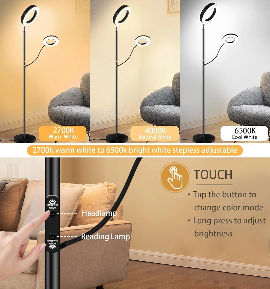 Floor Lamp for Living Room with 3 Color Temperatures,Super Bright Dimmable LED L