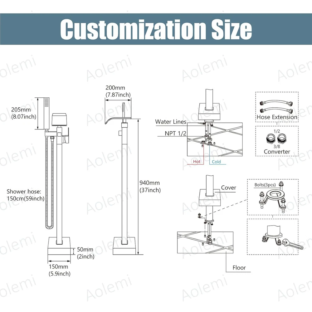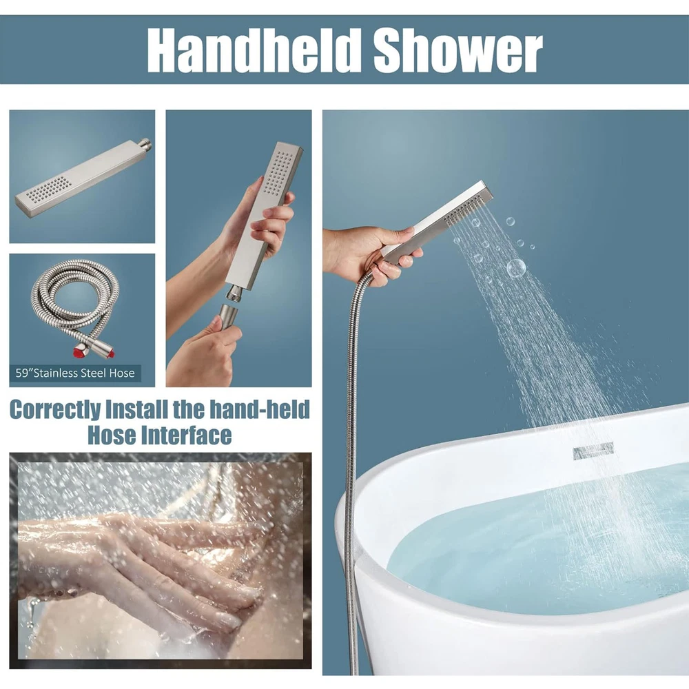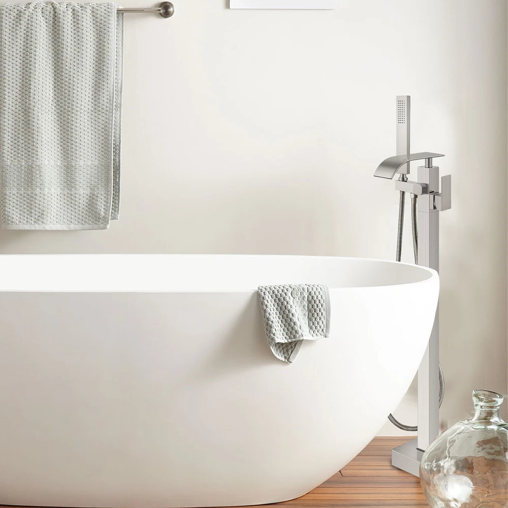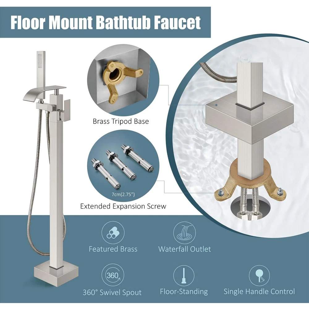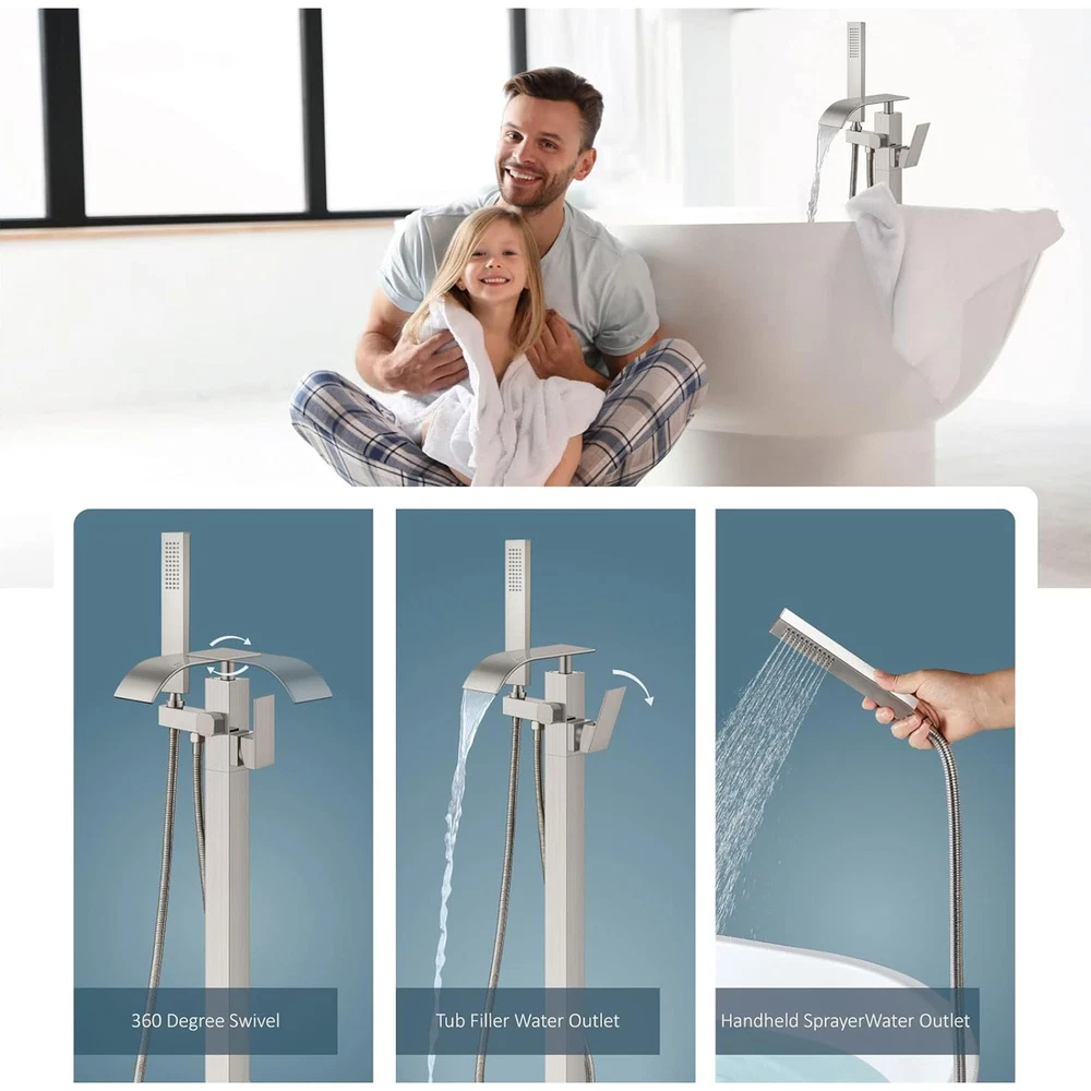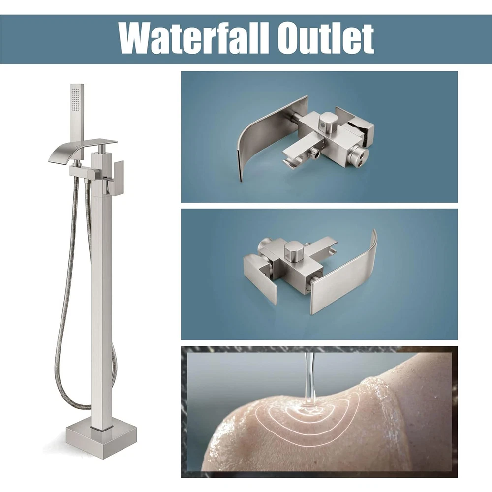 Store category Sign Up Now ! You may also like Product Description Bullet Points: Durable and Stable: By utilizing a brass tripod base and expansion screws, this freestanding bathtub faucet ensures a secure fit on your floor. Its solid brass construction is resistant to fingerprints and water stains, ensuring effortless cleaning. With a high-quality electroplated surface, this faucet boasts both durability and elegance. Stylish and Simple: Introduce a touch of modern sophistication to your bathroom with this freestanding bathtub faucet. Its stylish and elegant design, featuring sleek lines and curves, blends seamlessly with any decor style, delivering a remarkable addition to revamp your bathing experience. Seamless Switching: Enjoy the effortless convenience of a single-handle freestanding bathtub faucet with a diverter knob for switching between the nozzle and handheld showerhead. Easily control water temperature and flow rate for a stress-free bathing experience. Effortless Cleaning: Experience the convenience of a high-pressure shower head, designed for easy reach and mobility to quickly rinse away any substances adhered to the skin surface, making it perfect for tub rinsing or post-shower cleanses, complete with an ultra-flexible hose. Effortless Installation: Designed for seamless floor integration, our Freestanding Bathtub Faucet ensures a swift setup, conserving both time and energy, complete with all necessary hardware. Description: Enhance your bathroom experience with our Free Standing Tub Faucet. This floor-mount faucet is suitable for any decoration style and securely fixes on the floor. With its easy-to-use handles, control the water temperature and flow rate for a relaxing soak or a quick rinse. Ideal for floor installation, it quickly rinses away substances adhered to the skin surface. Specification: Color: electroplated chrome Material: brass+stainless steel Surface type: electroplating Product List: 1*main faucet body 1*straight tube 1*hand shower 1*shower hose 2*water supply hose 1*cover 1*installation accessories 1*instruction manual Notes: 1. Due to the different monitor and light effects, the actual color of the item might be slightly different from the color which is showed in the pictures. 2. Please forgive a slight measuring deviation due to manual measurement. Payment Delivery details Terms of sales About us Feedback & DSRs Payment Before you palce an order, please kindly make sure that you have a paypal account. We accept PAYPAL payment only. Payment should be completed within 2 days after auction closed, or unpaid dispute will be filed for an closing auction. An unpaid case will be filled after 4 days. Delivery details We ship to your eBay address. Each package will be shipped to US by UPS Regular Parcel with tracking number. Please check your shipping address carefully before checkout, it can't be changed if order completed. All items will be shipped within 1-2 business day upon receipt of payment.Orders placed on weekend will be shipped within 3 days. If you do not receive your item in 7-10 business days.please contact us immediately for further assistance. We will be responsible for any damages or losses incurred in the shipping process. About us We maintain high standards of excellence FIVE STAR and strive for 100% customer satisfaction! Positive Feedback is very important to us. We hope that you contact us immediately Before you give us neutral or negative feedback, so that we can satisfactorily address your concerns. We promise to offer the lowest price and high quality produce. Our working time: From Monday to Friday(9:30 am to 18:00pm), we don't working on holidays ,hope you can understand and know that , thank you. Please always talk to us via ebay Message. We appreciate your business and look forward to growing our e-Bay sales with satisfied customers. Feedback Contact us If you have any questions, please feel free to contact with us by ebay Message during our business hours ( 9:30a.m. to 5:30 p.m.), or email us through eBay, we will try our best to help you to resolve it. For any presale or after-sale questions,please do feel free to email us! Due to the time difference, each email will be replied within 1 working day,and weekend will be delayed a bit. Feedback
