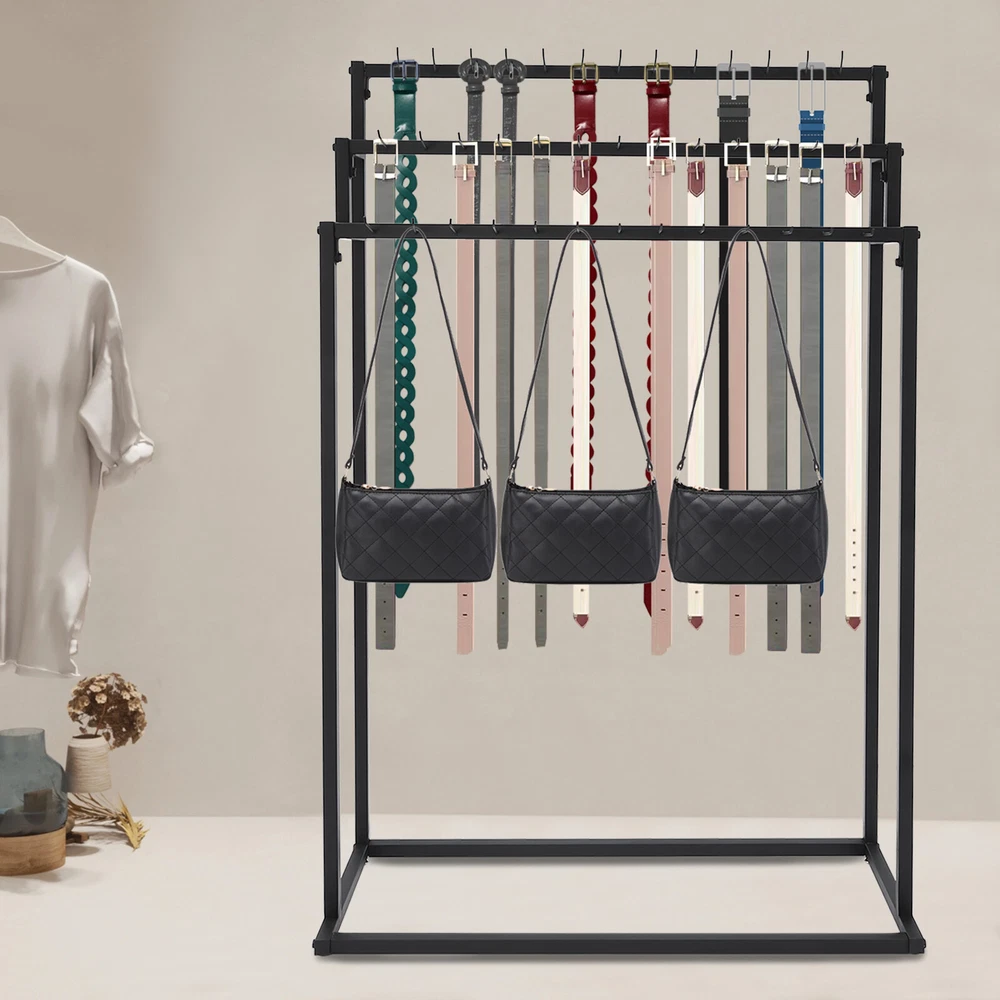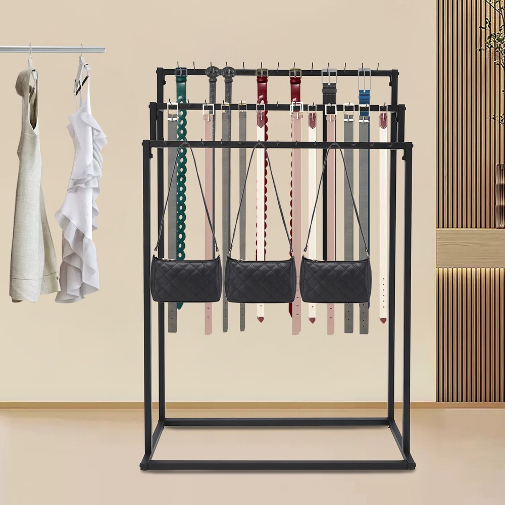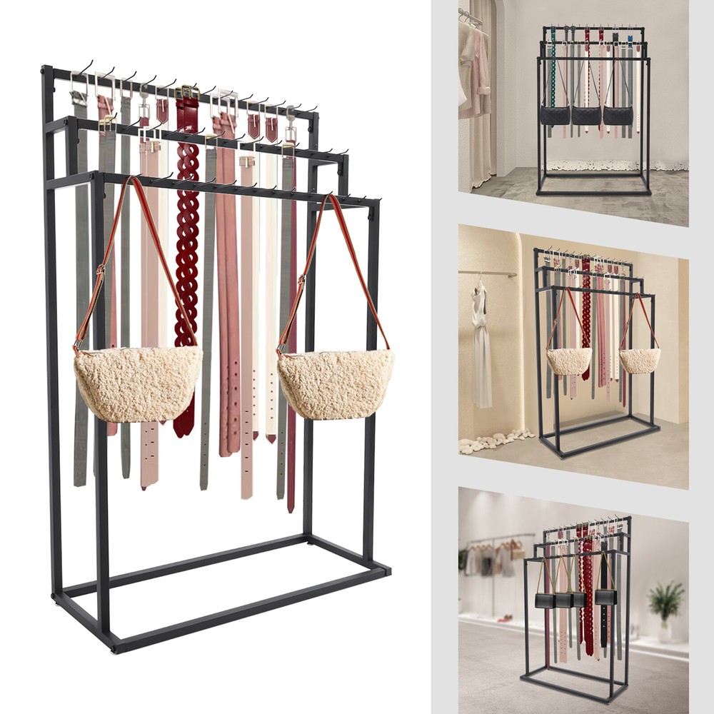 Floor Mounted Belt Hanger, Ties Scarf Rack Shawls Purse Shelf, Belt Organizer US Welcome to our store~ Description Our belt hanger is made of high-quality steel through a high-temperature baking paint process, with a stable structure and long service life, making it suitable for displaying belts and scarves and catching the eye of customer. Its clean lines and black color make it elegant and beautiful, bringing a pleasant aesthetic to any store or home. Key Features Build to Last: This product is made of high-quality steel with a high-temperature baking paint process, corrosion-resistant , rust-resistant, and arial-resistant , which can ensure your long-term use. Large Capacity: Its three-tier construction and 39 hooks allow you to store and display a large number of belts, ties, and scarves (not included) making your store neater. Suitable Height: The height of the product is 59.06in, which allows you to hang longer belts and display your items in all directions. Thoughtful Design: Its stepped design and open structure allow customers to easily see and select their favorite belts (not included). The hook is extend and slightly raised at the end to prevent items from falling off. Generous Appearance: The black color tone, smooth lines, and 3-tier vertical distribution structure give this product a generous look that adds appeal and beauty to your space. Easy to Assemble: With complete accessories and simple structure, you can easily complete the assembly yourself and enjoy the fun of the installation process. Space-saving: It makes full use of vertical space and has a small footprint, so you can place it against a wall and save space while improving product stability. Easy to Clean: With a smooth surface and simple structure, you can gently wipe it with a damp cloth (not included). Ideal Gift: Thanks to its beautiful appearance and practical function, it is a nice gift for your friends, families, and others who run a store. Details 4 Non-slip Feet: They make the product more stable, prevent wobbling, and avoid scratching the floor. Round Edges: The round and burr-free edges care for your skin when using and cleaning this product. Application It can be used to store and display your belts, ties, wallets, bags, key chains, scarves, and more. It is suitable for home use, supermarkets, high-end stores, clothing stores, vending stores, retail stores, belt shops, jewelry stores, and other commercial uses. Specifications Color: Black Style: Modern Material: Steel Process: High-temperature Baking Paint Assembly Required: Yes Mount Type: Freestanding Number of Tiers: 3 Number of Hooks: 39 Gross Weight: 8kg/17.64lbs Net Weight: 7kg/15.43lbs Product Size: 100*40*150cm/39.37*15.75*59.06in Package Size: 150*42*10cm/59.06*16.54*3.94in Package Included 1* Belt Hanger All Accessories for Assembly Notes Please note that our product does not include any belts. Please check the size carefully before ordering. Please allow the slight color difference caused by the shooting light and 1-3cm error due to manual measurement, and make sure you do not mind before you order. Payment Delivery details Terms of sales About us Contact us Payment We accept ebay payment 。 Fees such as import duties, taxes are not included in the item price or shipping costs. These charges are the buyer's responsibility. Delivery details Shipping: 2-9 working days to: USA Terms of sales We maintain high standards of excellence and strive for hundred percent customer satisfaction. Feedback is very important to us. We hope that you contact us immediately before you give neutral or negative feedback, so that we can address your concerns. It is impossible to address issues if we do not know about them! About us Your satis faction is our ultimate goal. We work hard to earn your trust and future business. Our certified technicians have tested each item before shipping. The unit comes with 1 year limited warranty on all manufacturing defects. a) If you receive a defective item, you may return it or ask for a discount. Please contact us within 14 days after you receive the package. b) What you returned must be intact and in its original packaging as re? u. Customer is responsible for shipping costs of the returned item. c) We will cover the cost of shipping back t with the shipping rate indicated in the registration page. We will send you a new unit or refund the full payment you paid. Thank you. Contact us Business Hour Business Hour: Monday To Friday: 8:30 AM to 5:00 PM (Beijing China time) Due to time zones, our reply to your questions may not be immediately. But within above working time, we will reply your email within 24 hours. If it's non-workdays, please kindly be patient and wait till Monday. Please contact us with ebay message. Please feel free to contact us if you have any questions. Monday To Friday: 8:30 AM to 5:00 PM (Beijing China time) Due to time zones, our reply to your questions may not be immediately. But within above working time, we will reply your email within 24 hours. If it's non-workdays, please kindly be patient and wait till Monday. Please contact us with ebay message. Please feel free to contact us if you have any questions. Warranty Three years Brand Unbranded Item Length 39.37in Item Width 15.75in Item Height 59.06in Type Belt Hanger Material Steel Mounting Free Standing Features Large Capacity Assembly Required Yes Style Modern Color Black Process High-temperature Baking Paint Number of Tiers 3 Number of Hooks 39 Gross Weight 8kg/17.64lbs Net Weight 7kg/15.43lbs Product Size 100*40*150cm/39.37*15.75*59.06in Package Size 150*42*10cm/59.06*16.54*3.94in UPC 764909393051 On Mar 30, 2026 at 20:29:14 PDT, seller added the following information: