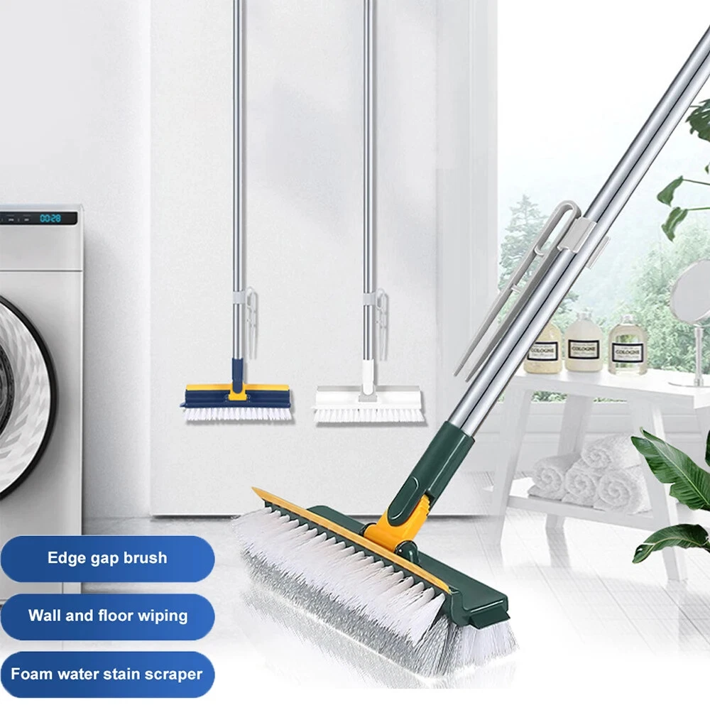 3 in 1 Floor Scrub Brush Long Handle 180°Rotating Multifunction Scrape Cleaning Brush with Right Angled Bristle & Scraper Stiff Bristle Floor Brush for Cleaning Wall Corner Patio Bathroom Tub Tile Feature: 1. Versatile Cleaning Tool: The long handle floor scrub brush acts as a 3-in-1 multifunction scrape cleaning brush, perfect for tackling stubborn stains, dirt, and grime on walls, corners, patios, bathrooms, garages, and kitchens. Its combined brush and scraper design boosts cleaning efficiency, making household chores a breeze. 2. Effective on Tough Stains: Designed with stiff bristles at a right angle, the floor brush scrubber excels in reaching grout lines, tight spaces, and corners without damaging tiles. This makes it an ideal tool for removing stubborn dirt from floors and walls, enhancing the cleanliness of your home. 3. Flexible and Easy to Maneuver : Featuring a handle that rotates 180 degrees, the stiff bristle floor brush allows for easy access to hard-to-reach surfaces. Clean tile floors and wall grout effortlessly with this ergonomically designed brush that adjusts to your cleaning needs. 4. Ergonomic Design for Multiple Surfaces: The scrape stiff bristle scrubber brush is ergonomically designed to maintain a 45-degree angle with the floor, offering a labor-saving grip that works well on both wet and dry surfaces. It's suitable for a variety of floors including tile, hardwood, glass, and concrete, as well as for cleaning tubs, bathrooms, kitchens, showers, walls, garages, and patios. 5. Dura ble and Secure Construction: Made from durable PP material and iron wire, the multifunction scrape cleaning brush features a handle with a locking threaded joint, ensuring it stays secure and doesn't loosen, even during heavy-duty cleaning tasks. This robust construction guarantees a long-lasting life for your cleaning tool. Specification: Color: dark green, white, dark blue material: plastic Product size: 24*109cm/9.44*42.91inch Packaging: PE bag packaging Note: Due to the different monitor and light effect, the actual color of the item might be slightly different from the color showed on the pictures. Thank you! Please allow 1-2cm measuring deviation due to manual measurement. 1 x Floor Scrub Brush