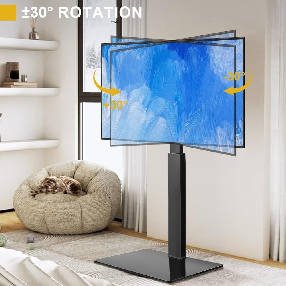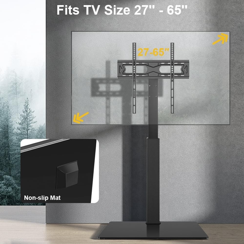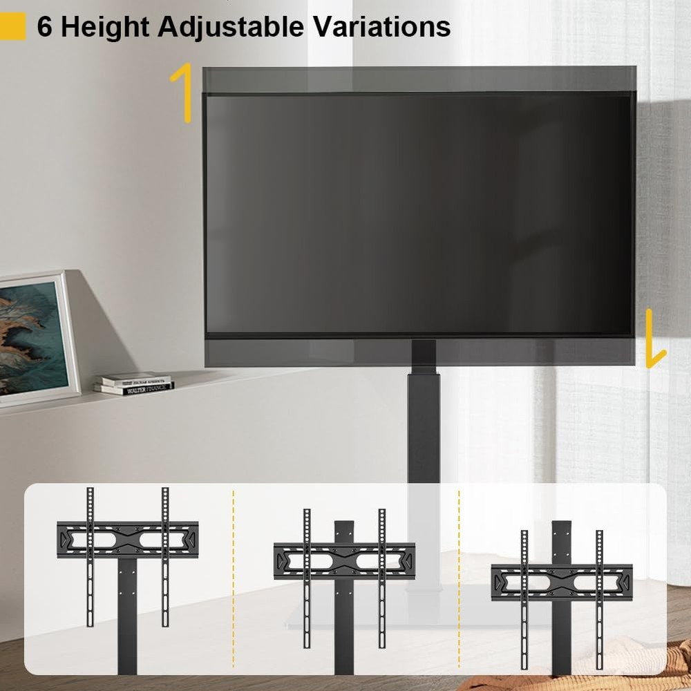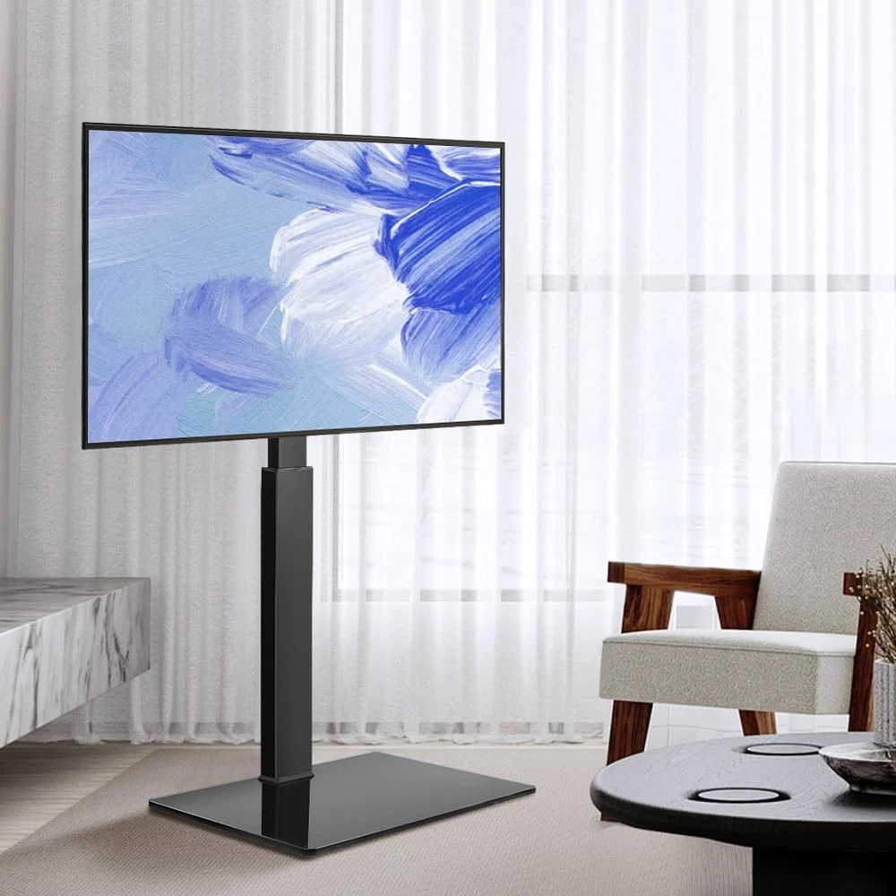 Floor TV Stand 27-65 Adjustable Swivel Tempered Glass Base VESA 400x400mm