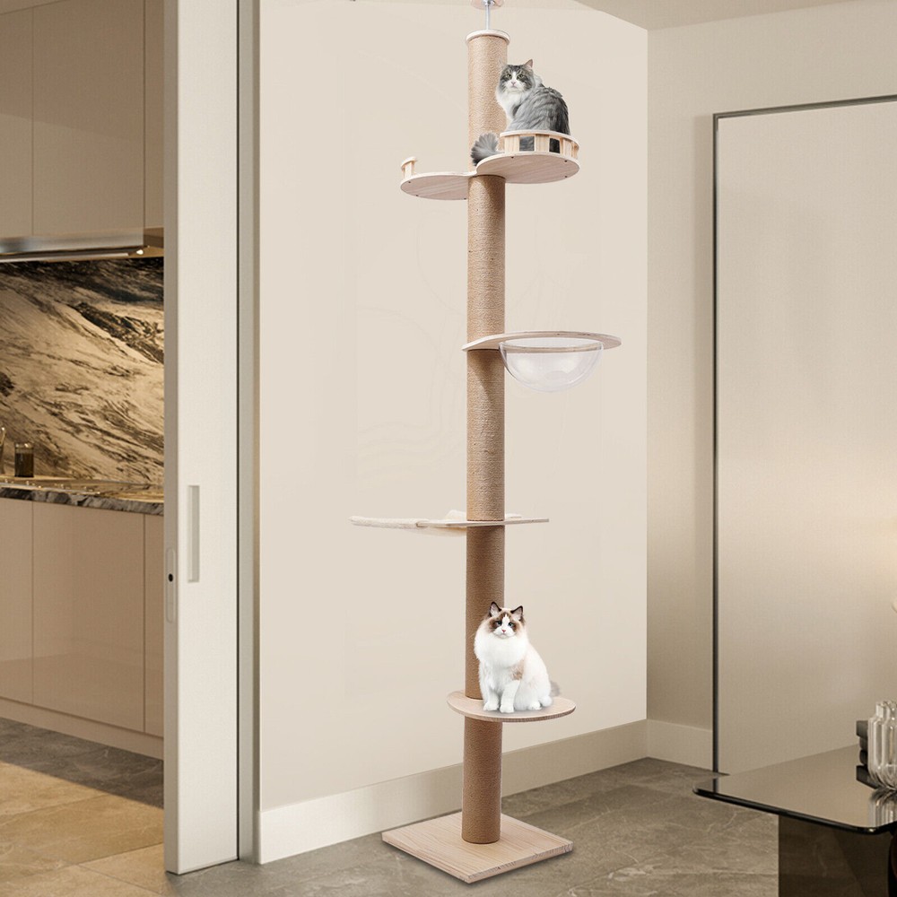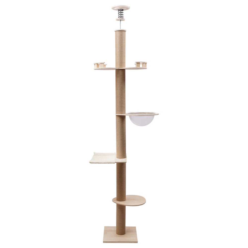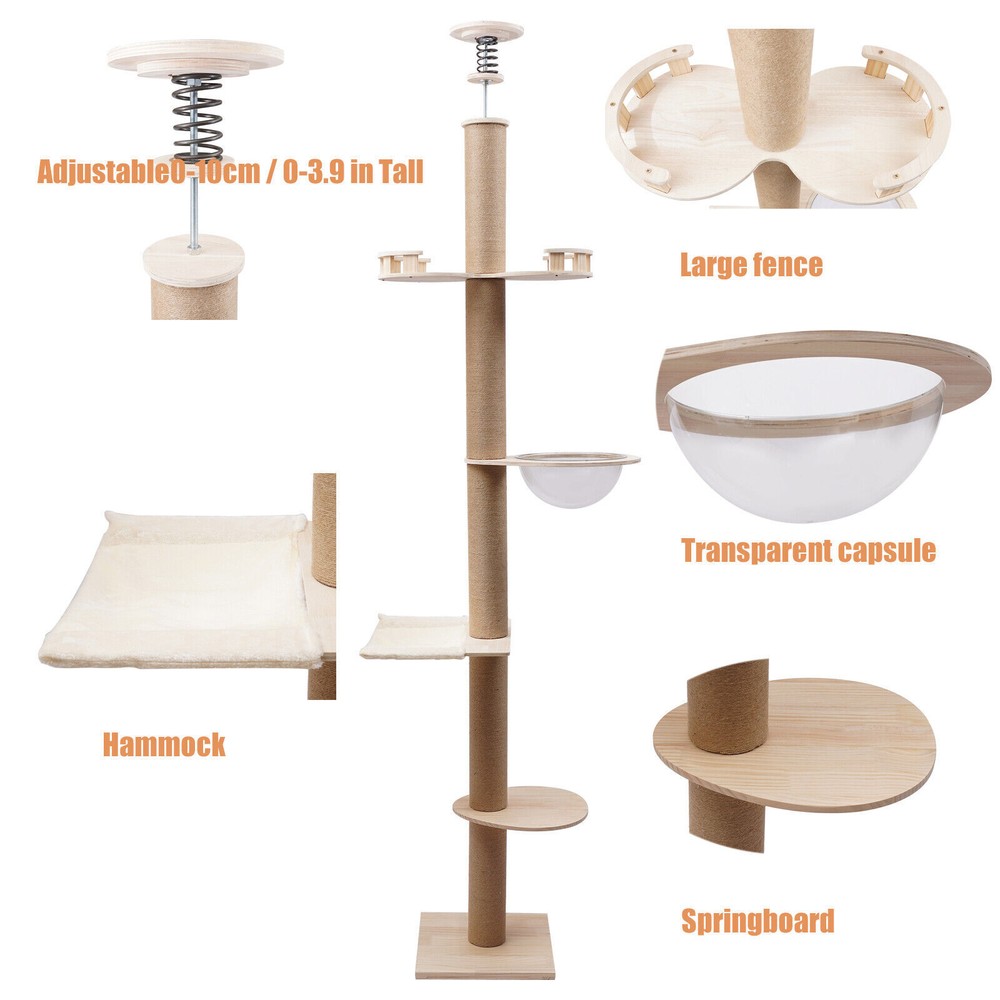 Cat Tree Climbing Floor-to-ceiling Tower Cat Play Sisal Rope Scratching Post Floor-to-ceiling Cat Tree Cat Climbing Tower with Natural Sisal Rope Scratching Post, (Adjustable Height:100.4inch-104.3inch) Description Buy a Cat Tree for Your Cat, and Give It a Home Paradise to Play in. This Cat Tree Includes a Springboard, Space Capsule, U-shaped Hammock, and a Double Watchtower, Which Is a Fabulous Play Truck for Your Cat to Climb, Scratch, Sleep, and Play. It Uses Solid Pine Wood, Paper Tubes, and Hemp Ropes As Material, Making This Cat Tree Safe, Durable, and Environmental-friendly. Its Height Is Adjustable from 100.4-104.3". You Can Send It to a Cat Lover at Various Festivals. Key Features Premium Material: This Cat Tree Is Made of Premium Solid Pine Wood, Paper Tubes, and Hemp Ropes Without Paint, Making It Strong, Long-lasting, Environmental-friendly, and Safe for Your Cat. Adjustable&Proper Height: the Tension Rod with a Spring on the Top Makes This Cat Tree Be Adjusted from 100.4-104.3" to Accommodate the Room Ceiling. Its Proper Height (Max. 104.3" ) Arouses Cats' Curiosity and Allows Them to Better Enjoy the Scenery Above, Thus Relieving the Pressure on the Cat and People. Sturdy Construction: Large-diameter Columns(4.5"), Solid Pine Boards, and Square Bottom Plates Add Firmness to the Structure of This Cat Tree, Making Its Load-bearing Capacity Reach 33 Lbs, Which Is Suitable for Most Cats. Family Playground : with a Springboard, Space Capsule, U-shaped Hammock, and Double Watchtower in a Cross Distribution, This Cat Tree Is a Home Paradise for Your Cat to Play, Snap, Climb, and so on. Considerate Design: All Posts Are Covered with Hemp Ropes, Making It Good for Cats to Form a Good Habit of Scratching Without Damaging Your Expensive Furniture. Modern Appearance: the Light-colored Wood, Round&Square Shape, and Smooth Surface Make This Cat Tree Attractive, Fit Any Room Decor, and Add Beauty to Your Home. Diy Combination: You Can Freely Change the Places of the Springboard, Space Capsule, U-shaped Hammock, and Double Watchtower to Suit Your Cat's Habits. Easy to Assemble : You Can Easily Assemble the Cat Tree Without Drilling Holes in the Ceiling. and There Is a Chinese&English Diagram for Your Reference. Ideal Gift: Thanks to Its Exquisite Design and Modern Appearance, You Can Choose This Cat Tree As a Gift for People Around You Who Have a Cat on Thanksgiving Day, Christmas, Etc. Easy to Store&Space-saving: You Can Disassemble It for Easy Storage. It Takes up Mostly Vertical Space and Occupies Only a 15.7*15.7inch Base on the Floor, so You Can Settle It to Any Spot You’d like to. Easy to Clean: Because of the Smooth Surface, You Can Wipe the Dirt from This Product with a Wet Cloth. Details Round Edges : All Boards with Fine Grinding Treatment Have Round Edges That Prevent Your Cat from Scratching. Clear Space Capsule: the Clear Space Capsule Allows You to View the Cat's Status When It Is Sleeping in It. Soft U-shaped Hammock: the Soft U-shaped Hammock Allows Your Cats to Rest, Perch, and Take a Nap on the Plush Platforms If Tired and Provides Them with Deep Quality Sleep. Application It Is Suitable for All Kinds of Cats to Jump, Scratch, Sleep, Climb, Play, Etc. the Cat Should Be Lighter than 33 Lbs. and You Can Place This Cat Tree in Your Living Room, Bathroom, Balcony, Playroom, Study Room, and so on. Specifications Color: Light Brown Material: Pine Wood, Hemp Rope, Paper Tube Process: Grinding Style: Adjustable Target Species: Cat Uses: Indoor Mounting Type: Free-standing Number of Tiers: 4 Assembly Required: Yes Weight Capacity: About 15kg/33lbs Posts Diameter: 11.5cm/4.5inch Baseboard Size(L*W): 40*40cm/15.7*15.7inch Springboard Size(L*W): 40*35cm/15.7*13.8inch U-shaped Hammock Size(L*W): 45*40cm/17.7*15.7inch Space Capsule Size: 49*40*30cm/19.3*15.7*11.8inch Double Watchtower Size(L*W): 60*30cm/23.6*11.8inch Adjustable Height: 255-265cm/100.4-104.3inch Package Included 1* Cat Tree 1* Chinese&English Installation Diagram All Accessories for Assembly Notes This Type Is Fit for a Ceiling Height of 100.4-104.3". Please Confirm the Ceiling Height Before Purchase. Selecting the Right Height for the Product Can Ensure Its Stability, Otherwise, It Will Cause the Cat Tree to Be Unstable. It Is Recommended for Cats Lighter than 33 Lbs. You Can Place the Cat Tree Somewhere Away from Your Furniture so That There Will Be Fewer Scratches Added to Your Furniture. You Can Prepare a Soft Pad Under the Baseboard to Prevent It from Scratching the Floor. A Small Number of Cats May Not like to Be Close to or Adapt to the Product When They First Come into Contact with It. After Half a Month to a Month of Adaptation, They Will like It. If You Have Several Big Fat Cats, You Can Buy Two Sets and Install Them Together. Considering Cats' Sharp Claws, It Is Necessary to Replace the Post After Using It for a Long Time. Please Allow the Slight Color Difference Caused by the Shooting Light and 1-3cm Error Due to Manual Measurement, and Make Sure You Do Not Mind Before You Order. Payment Delivery details Terms of sales About us Contact us Payment We accept ebay payment 。 Fees such as import duties, taxes are not included in the item price or shipping costs. These charges are the buyer's responsibility. Delivery details Shipping: 2-9 working days to: USA Terms of sales We maintain high standards of excellence and strive for hundred percent customer satisfaction. Feedback is very important to us. We hope that you contact us immediately before you give neutral or negative feedback, so that we can address your concerns. It is impossible to address issues if we do not know about them! About us Your satis faction is our ultimate goal. We work hard to earn your trust and future business. Our certified technicians have tested each item before shipping. The unit comes with 1 year limited warranty on all manufacturing defects. a) If you receive a defective item, you may return it or ask for a discount. Please con