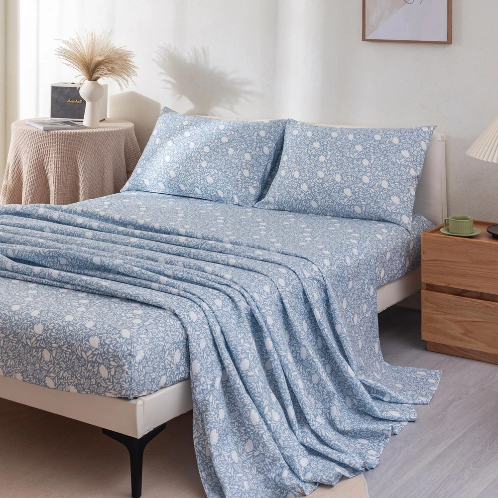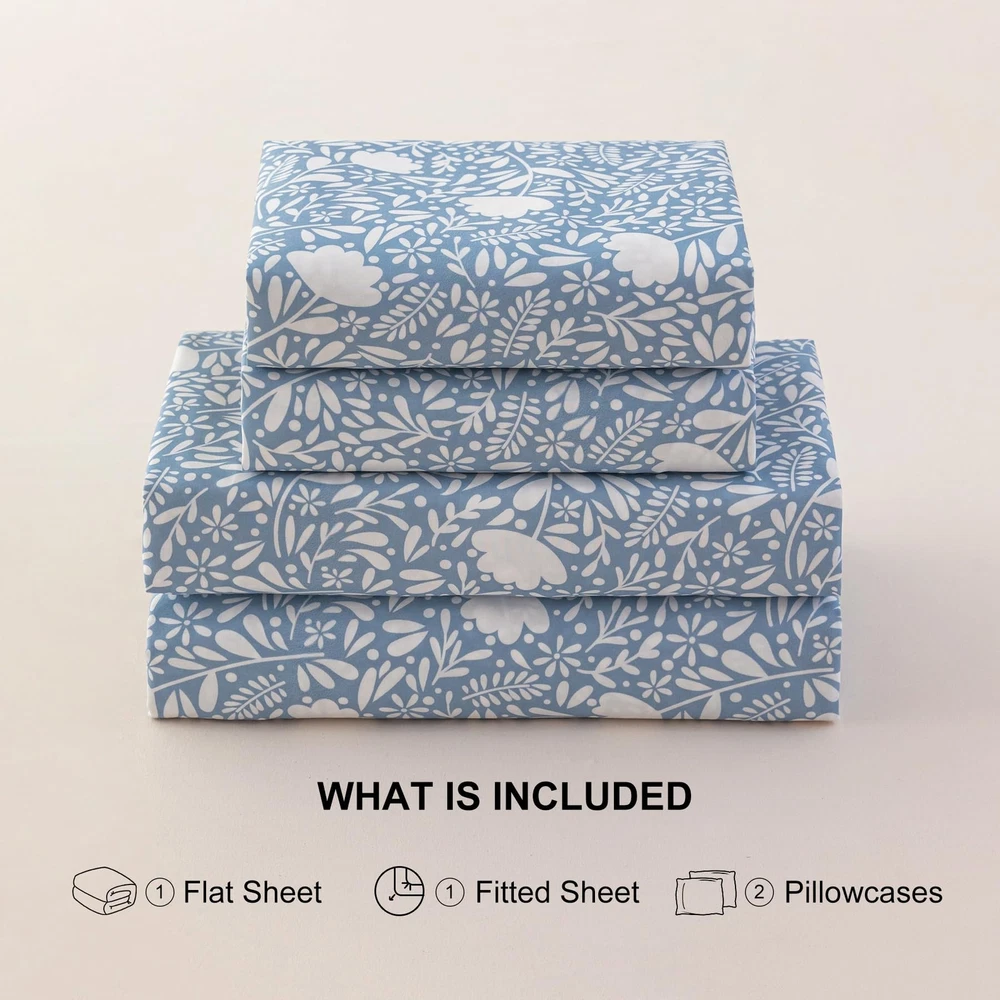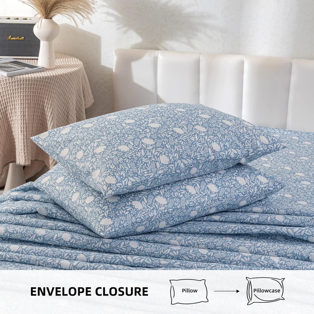 PREMIUM FABRIC: queen size bed sheets set is made of high-density 100% microfiber. The queen sheet set is printed with beautiful floral patterns, allowing you to say goodbye to boring solid colors and bring elegance to your bedroom. When bed sheets meet flowers, brings you your own romance. SIZE DIMENSIONS: 4 pieces queen bed sheet set includes 1 flat sheet (90"x102"),1 fitted sheet (60"x80"x18") and 2 pillowcases (20"x30"). High-quality printing technology and product enhanced craftsmanship details, the floral queen sheets will not pill or fade. Just one set can bring you a luxurious sleeping experience. DEEP POCKET: The queen sheets deep pocket fits 18" deep mattresses. This fitted sheet is designed with a reinforced, stretchable elastic band all the way around the edge. This design helps the fitted sheet fit perfectly on your mattress, preventing it from sliding off the mattress and moving around while you sleep. SOFT & BREATHABLE: The finest quality microfiber yarn is hydro-brushed and pre-washed for an unbelievable soft feel for queen size sheet set. Comfortable and breathable material keeps you cool in the summer and warm in the winter. The sheet set queen size can be used in all seasons. When you lie down, it's like sleeping in the arms of flowers. EASY CARE: Please wash the queen size sheets deep pocket in cold water, gentle cycle, then tumble dry on low heat when needed. Our microfiber bedding are OEKO-TEX Certified. It is a worldwide independent testing and certification system that can ensure our bed sheet set follows strict manufacturing guidelines. takes every product seriously.