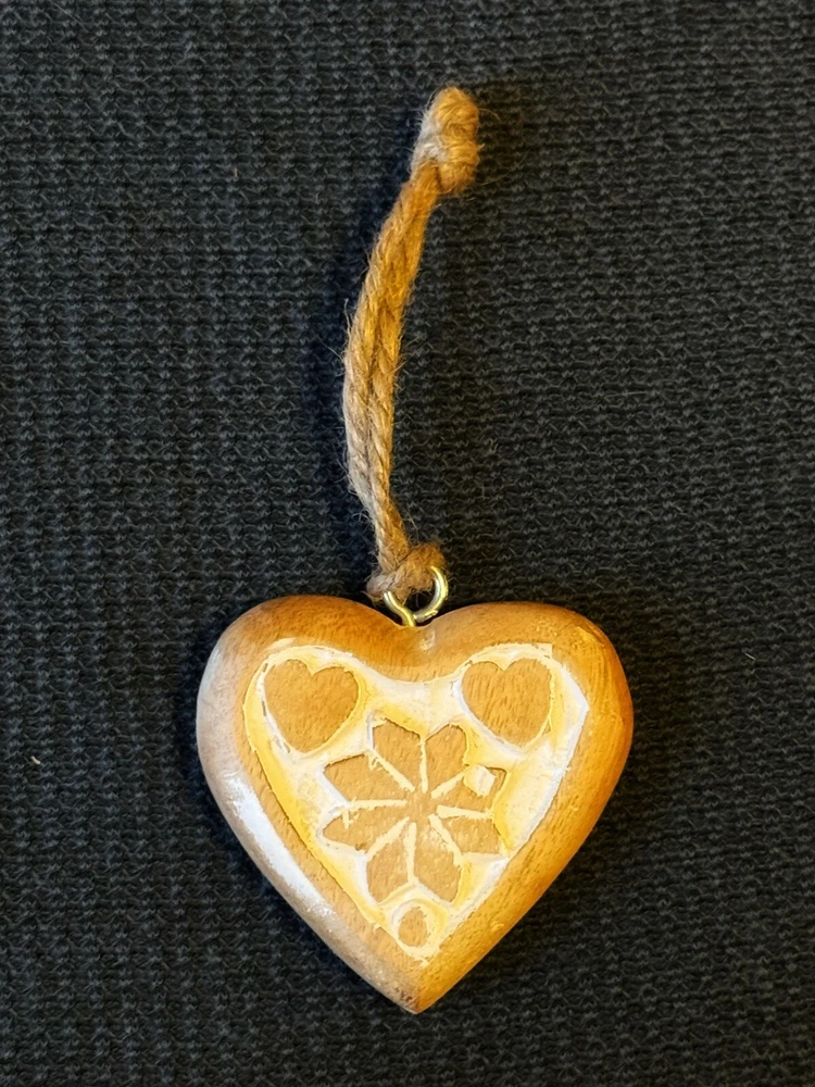 Add a touch of natural beauty to your home decor with this exquisite Floral Hand Carved Wooden Hanging Heart. Crafted with intricate carvings, this heart-shaped ornament measures 2 3/4" x 2 3/4" x 1/2" and is sure to be a unique addition to your collection. Made from high-quality wood, this ornament is perfect for adding a romantic touch to your living space or as a charming gift for someone special. The delicate carvings and beautiful floral design make this ornament a must-have for anyone who loves handmade crafts and unique home decor.