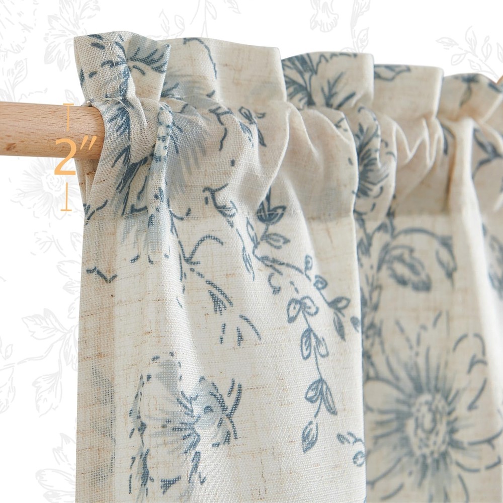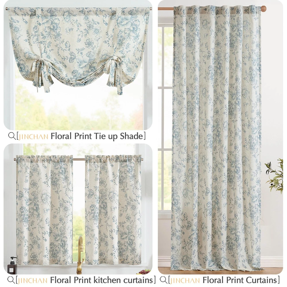 Here's why you'll love kitchen curtains set! Put these spring floral kitchen curtains set as a finishing touch to your home decor! Well-Made Floral Tier Curtains: These attractive medallion kitchen curtains set features a 2.5 inch rod pocket top. Our kitchen curtains are sold in 2 panels of 24 inch tier curtains and a 16 inch valance curtain. Frame your windows with scroll paisley linen-blend kitchen curtains, livening up indoor spaces with a sense of freshness and elegance with our mindfully made kitchen curtains. Light-filtering Farmhouse Kitchen Curtains: These linen-poly blend kitchen curtains are lightweight with a farmhouse floral design, diffusing unwanted light while offering privacy. kitchen curtains set adds farmhouse, rustic, contemporary or vintage style and refines the look of your home spaces. Enjoy serene and cozy ambience with our kitchen curtain set! Versatile kitchen curtains valances:flower kitchen curtains for windows are the partner with your glass door, bathroom window, laundry room, study, closet, under the sink, or basement. These kitchen cafe curtains are easy to install and maintain. Choose different hanging methods with 2 inch pole pocket or with clip-on rings (sold separately). Decorate your home with our floral kitchen curtains! Easy Care Tier Curtains: Machine wash in cold water gentle cycle and tumble dry in gentle setting. Do not bleach this kitchen curtains set. Ironing or streaming the kitchen curtains if necessary. ABOUT : Visit our store and discover more window treatments in a variety of designs and fabrics. strives to offer quality home decor for spaces like living room, bedroom, kitchen, including but not limited to window curtains, shower curtains, french door curtains, area rugs, and throw blankets. We love exploring possibilities and discovering delights in life and transforming the inspiration into our works, to you. Window Curtain Set: Our package contains two tiers and one valance adequately cover your kitchen windows. Kitchen curtains and valance add a finishing touch to your room. Each tier panel measurement:W26"x L24"(Tiers total W52"x L24"). Valance measurement:W50"x L16" Farmhouse Floral Motif: Our linen short curtains have botanic pattern printed on sublte textured sheert, bringing both casual warmth and refined style to the room. Glorious bouquet of flowers and ferns gives the curtain a rustic and vintage look. Lightweight & breathable fabrics are suitable for use throughout the home Wide Application: The cafe curtains set is not only suit for the kitchen window, also the addition to your glass door, bathroom or living room windows, laundry room, study, basement, closet, cabinet, RV or camper. They can be paired with farmhouse, rustic, modern or vintage style home decor as you like Easy Care: These linen kitchen curtains are machine washable in cold water in the gentle cycle and tumble dry in a low setting. Do not bleach. Creases on the linen curtains from packing and shipping can be pressed out with low temperature ironing