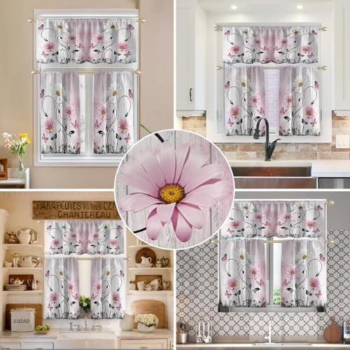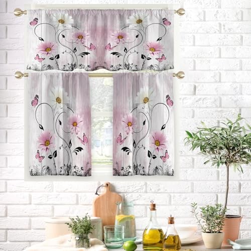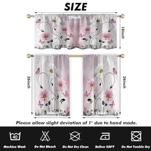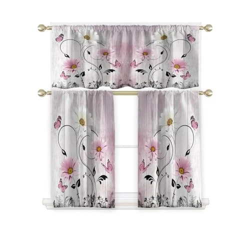 Return Policy Fast Delivery Trusted seller Pink Floral Kitchen Curtains Valance and Tiers Set 3 Piece Rustic Flower White Daisy Butterfly Rod Pocket Small Short Living Room Bedroom Bathroom Window Drapes 52x18 inch + 26x36 inch*2 Product Description Package Contents: 1 Valance measurement: 52 inch width x 18 inch height , 2 Tiers Panels measurement: 26 inch width x 36 inch height(Tiers total W52"x L36") Rod Pocket: Curtain rods will easily slide through top of window treatment; Can fit most window curtain rods Made from: High quality polyester fabric material; Extremely soft to touch Function: It's decorative curtains for living room, bedroom, kitchen, dining room; Please be kindly noted that these are unlined drapes, only can block out 30~50% sunlight while still provide privacy Easy Care: Machine washable; Tumble dry low; Wrinkles will be disappeared after hanging for a few weeks, or iron at low setting Shipping Returns Payment Shipping Shipping is FREE to all addresses other than APO/PO boxes in the lower 48 states. All our stock ships from US-based warehouses. Shipped via USPS or UPS (depending on location and package weight) Unless stated otherwise, all orders will ship within 24-72 hours of your payment being processed. Check our feedback to see the great reviews of FAST shipping we offer. Returns Seller does not accept returns Payment We currently accept payment via eBay managed payments only. Once payment is cleared, we will dispatch your shipment within 1-3 business days. Please refer to the "Shipping" tab for more information regarding shipping speed to your destination.