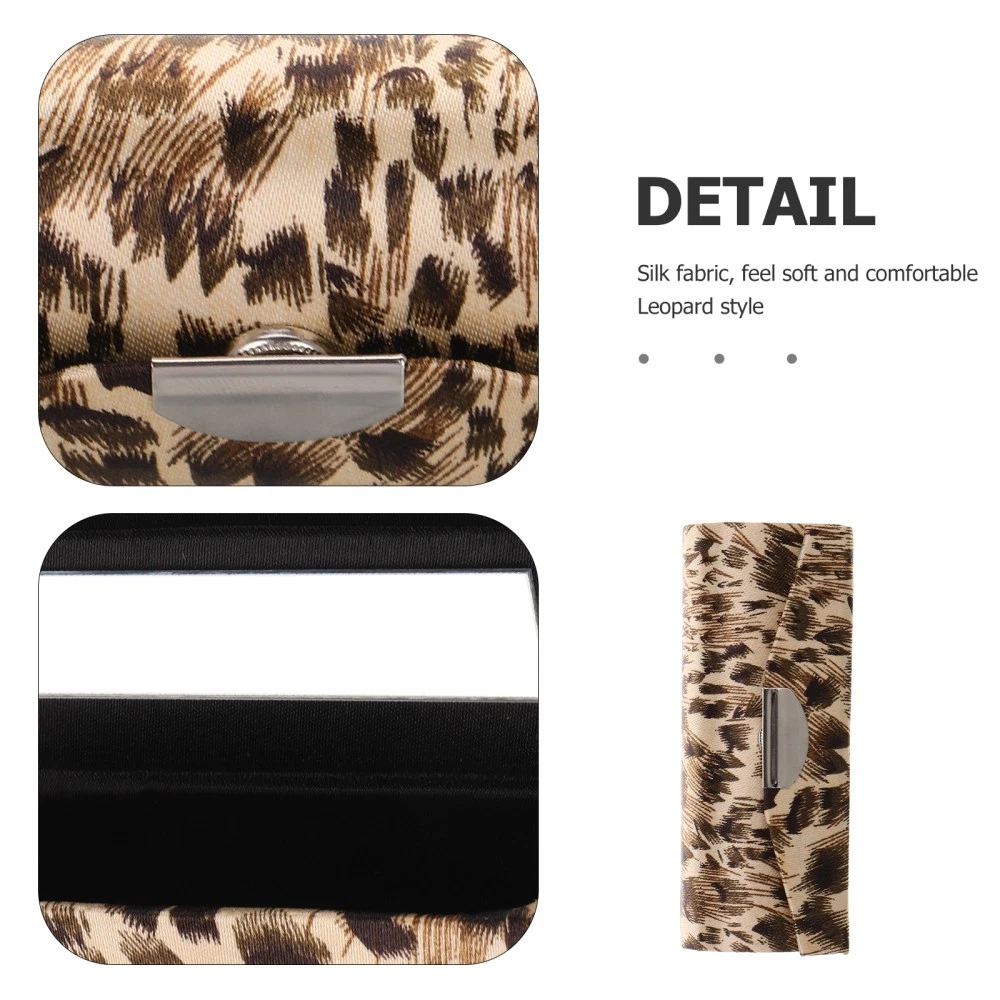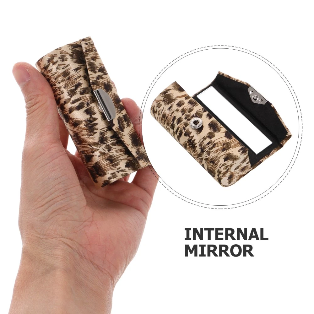 Floral Leopard Print Travel Makeup Bag with Mirror for Lipsticks