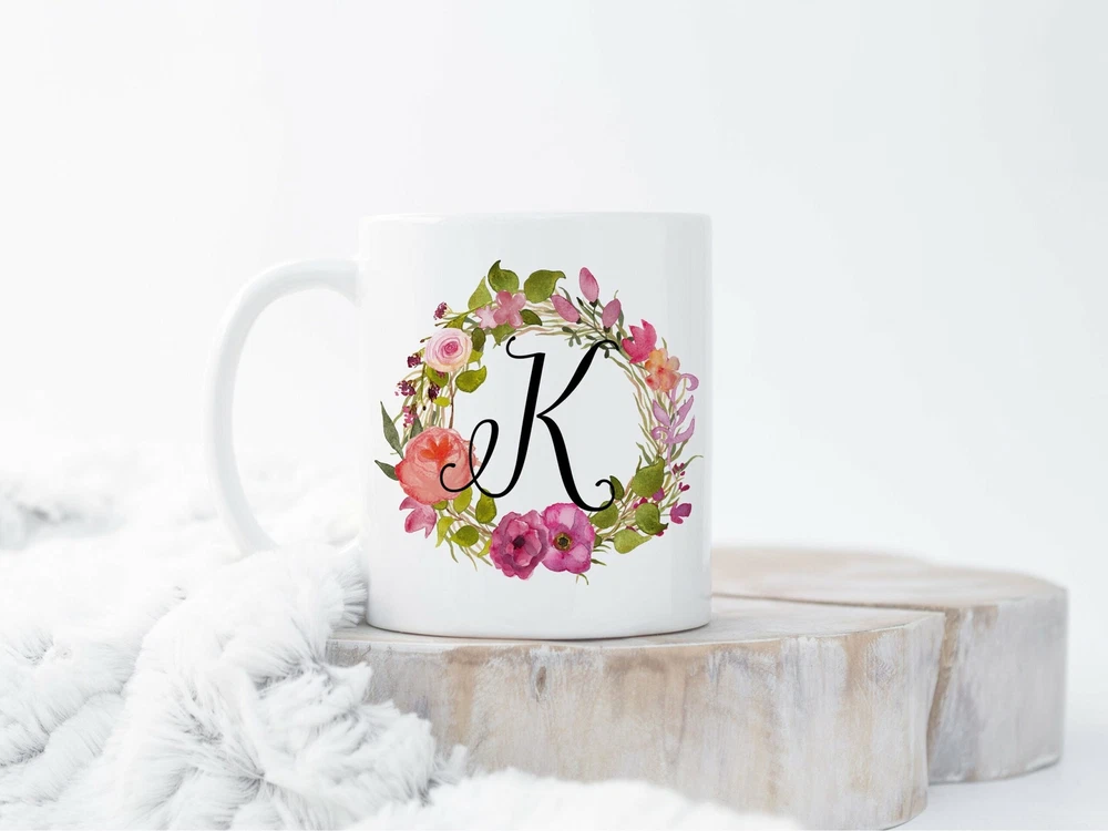 Floral Monogram Custom Monogram Mug Floral Mug Monogram Mug Floral Wreath Product Details.. This high quality 11oz. ceramic white mug has a premium hard coat that provides crisp and vibrant color reproduction sure to last for years. Perfect for all hot & cold beverages. The highest quality printing possible is used. It will never fade no matter how many times you wash it. Material: 100% Ceramic. Print both sides. Dishwasher and Microwave Safe. High Gloss + Premium White Finish. Printed in the U.S.A. Personalized & Custom. We support personalized and custom mug to add custom, when placing an order, you can add notes to the "order note" in shipping address section. Also you can contact us directly via message. Shipping Info. Ready to ship in 1 to 2 business days, All products are made-to-order and proudly printed in the United States. Shipped by USPS and DHL, You will receive your order in 5-7 days. Replace & Refund. All products are defective during shipping broken, chipped will be replaced free of charge. You are not satisfied with the product, we will refund 100% money to you. If any other issues arise, please do not hesitate to message, we would be more than happy to assist you.