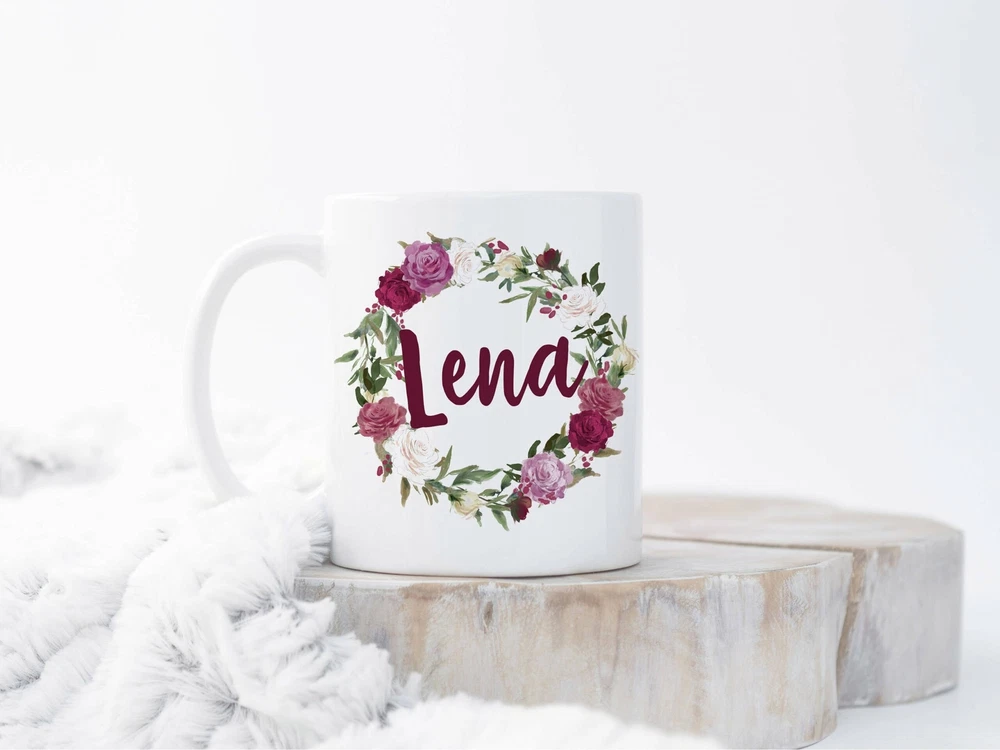 Floral Name Mug Custom Name Mug Personalized Mug Custom Coffee Mug Monogram Mugs