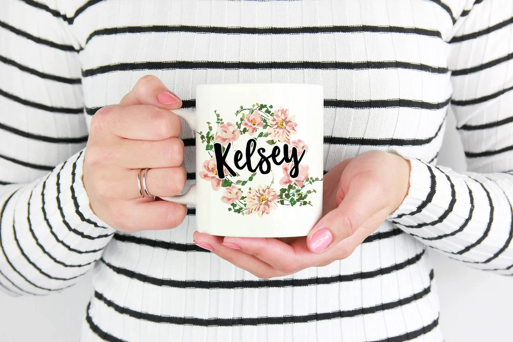 Floral Name Mug Custom Name Mug Personalized Mug Custom Coffee Mug Monogram Mugs